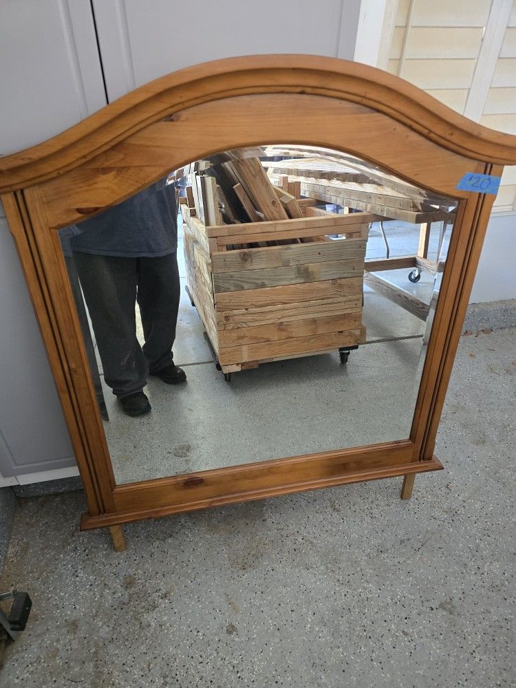Mirror for ontop of and behind a dresser ...it is 44 inches wide and 50 inches tall with the legs ...pickup only cash only