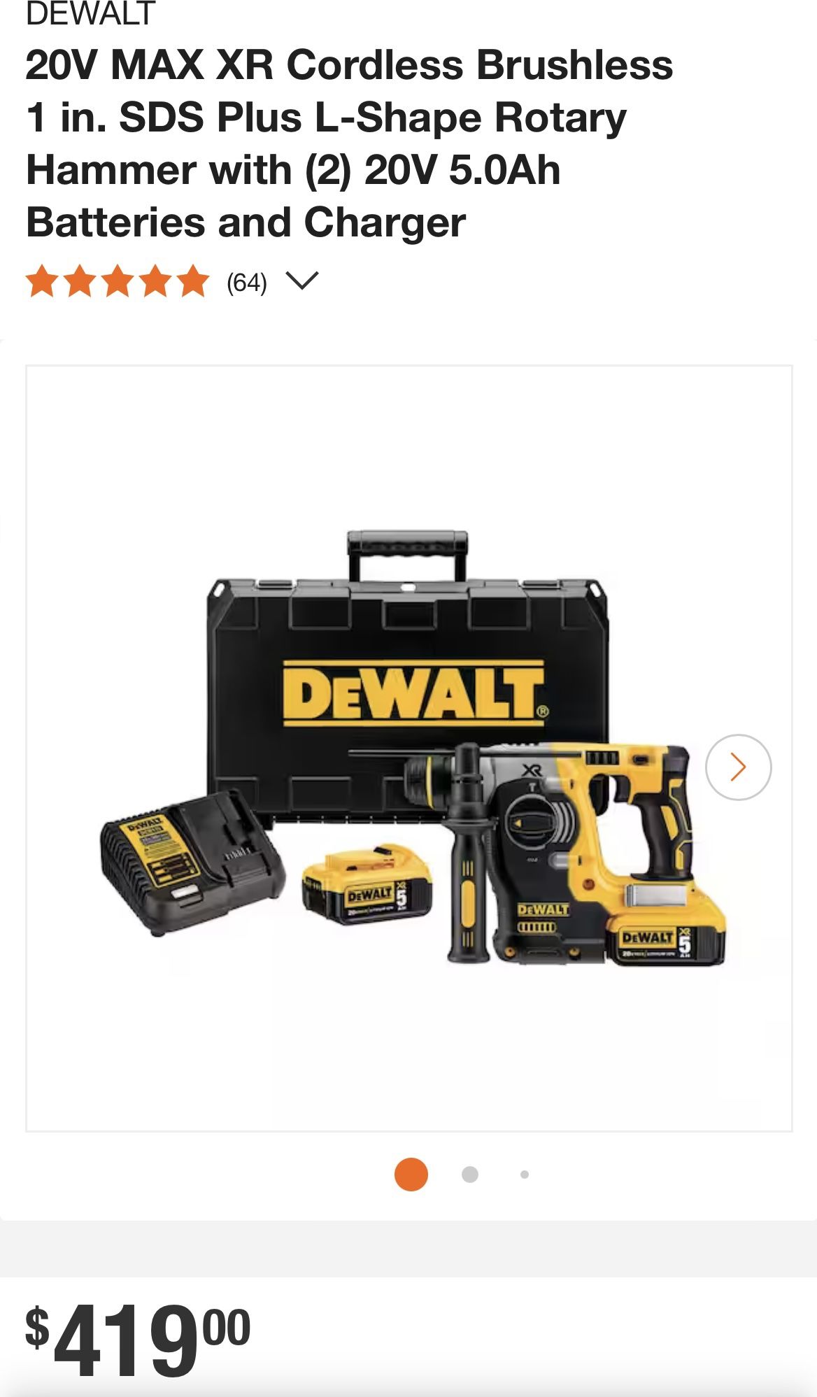 DEWALT 20V MAX XR Cordless Brushless 1 in. SDS Plus L-Shape Rotary Hammer with (2) 20V 5.0Ah Batteries and Charger