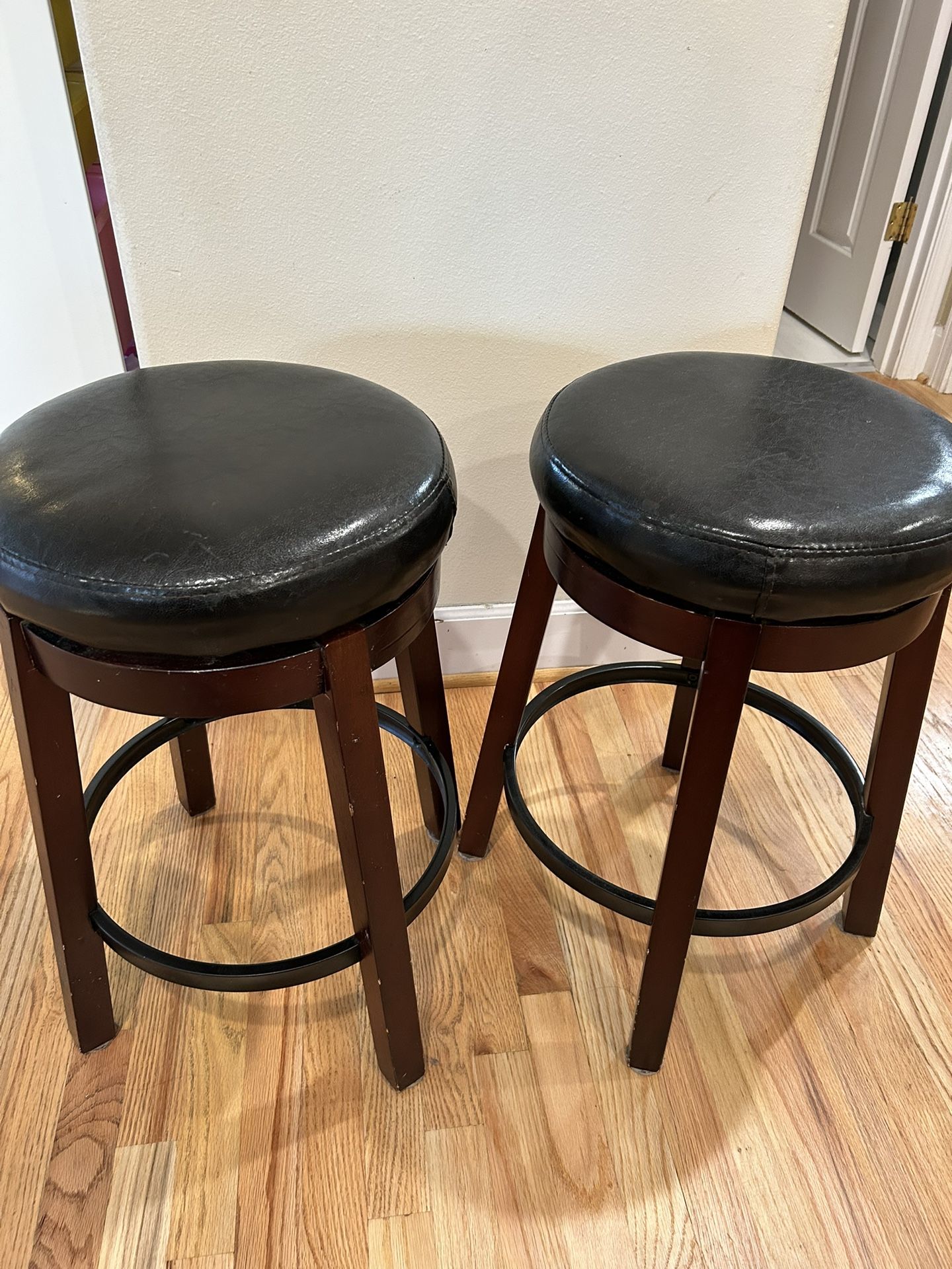 24” height 15”seat, faux leather cushion top, originally bought from Costco. $25 each.