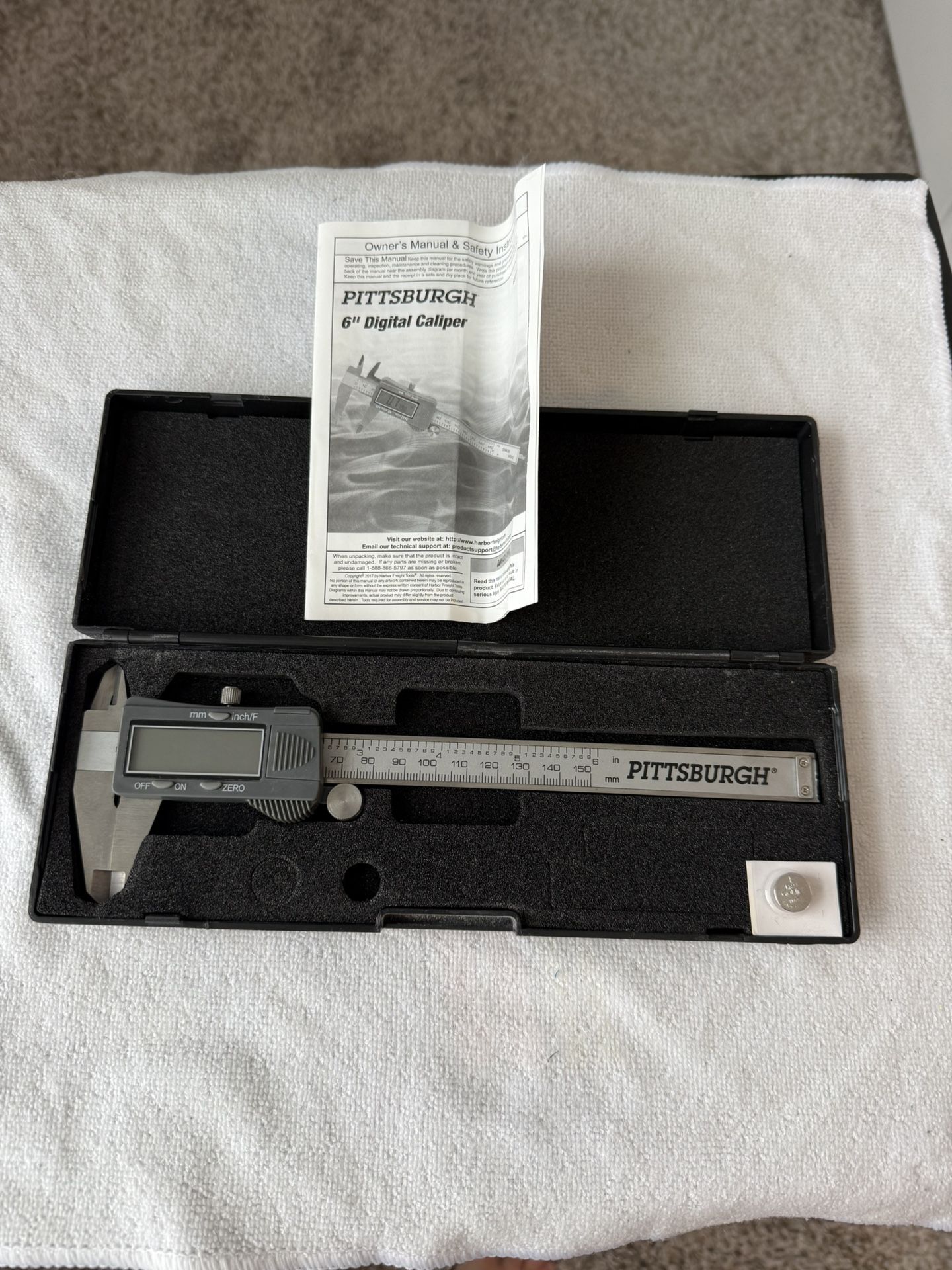 Barely used Pittsburgh 6-inch digital caliper. Stainless steel with digital readout. Includes protective case, instructions, and battery. Works perfectly. Great for shop, garage, or home projects. First come, first served. π² $15 OBO
