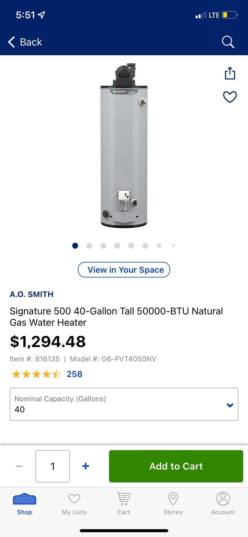 Signature500 40-Gallon Tall50000-BTU Natural Gas Water Heater