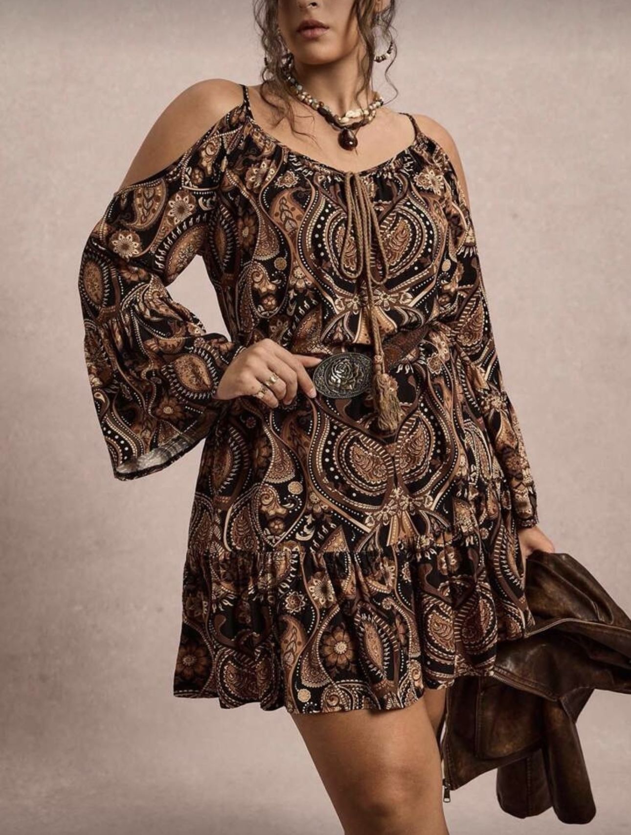 Vestido por encima de las rodillas y mangas largas