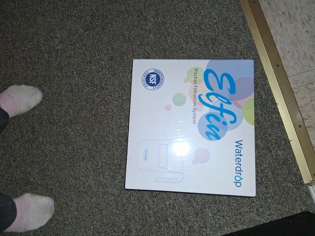 Water drop filtration pitcher- is municipal water safe to drink? I dont know but this pitcher comes with with a filter to eliminate many chemicals and unsafe elements. Newstill in shrinkwrap. EASY to use.