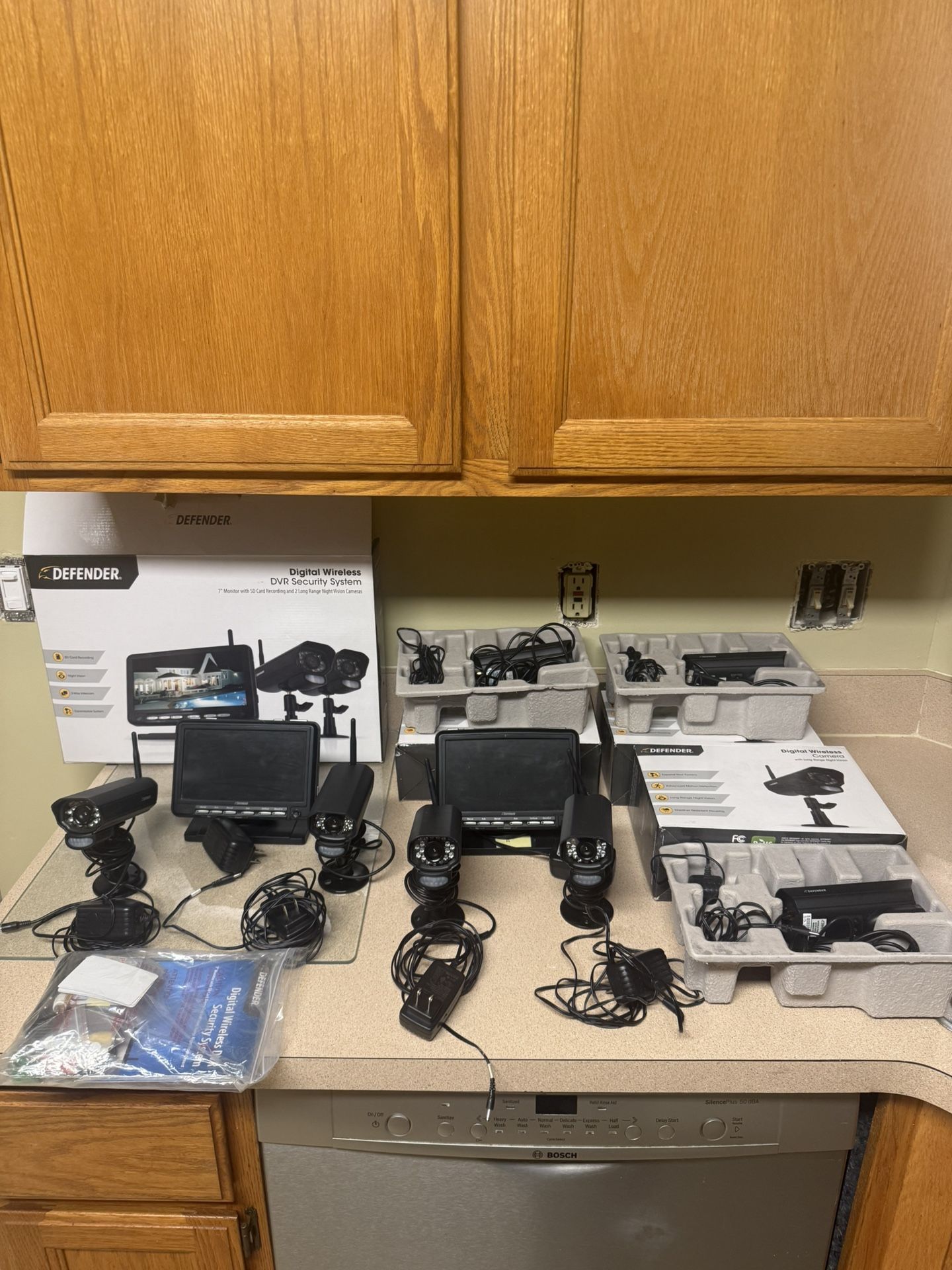 Defender home surveillance system 2 monitors, 7 cameras, mounts, cords, and all manuals/ instructions Never used $225 OBO