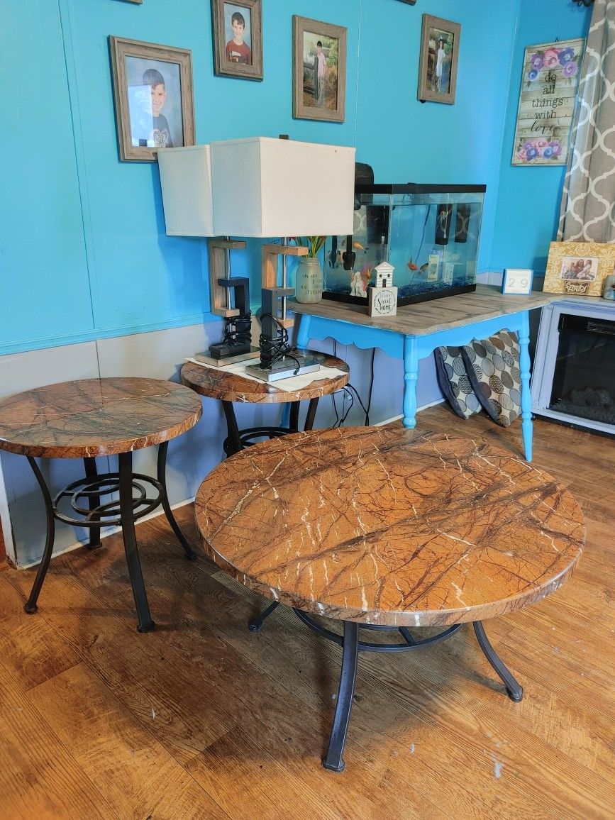Two end tables and a coffee table two lamps can separate lamps