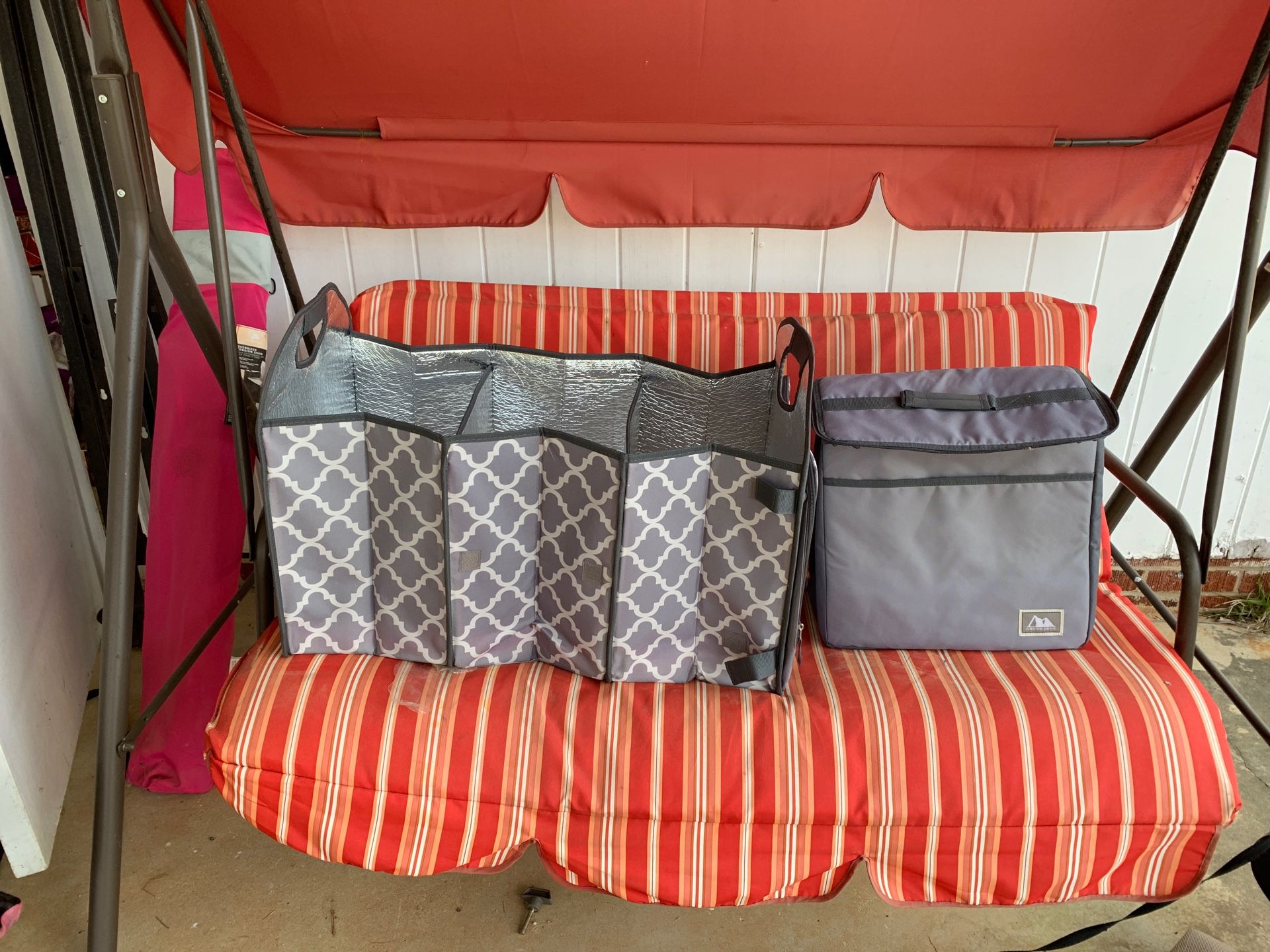 Never used. Not in original package. Collapsible and insulated storage cube and cooler for trunks or back of SUV. Folds away when not in use