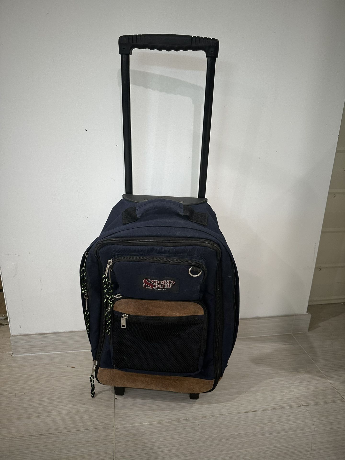 Olympia Sports Plus Rolling Expandable Backpack Blue With Leather 9dx21hx12w