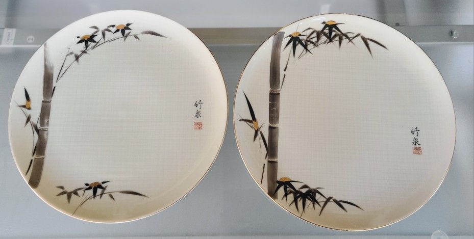 Vintage Japanese Porcelain Platter Charger Bamboo Design Gold Trim - 10 "