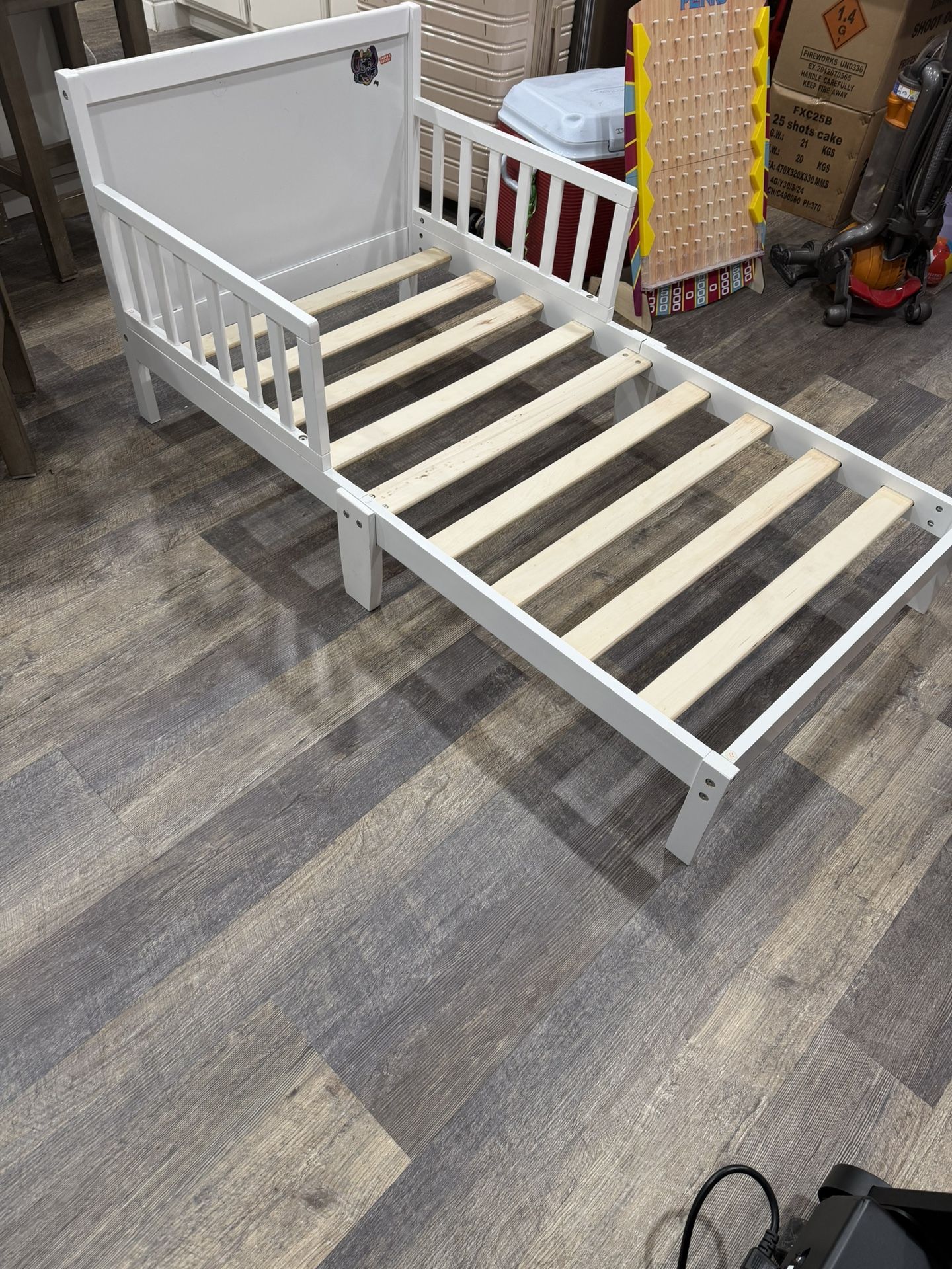 Barely used toddler bed with mattress. Just needs a good cleaning. Deminsions are 29”W x 55”L x 25”H. Free for however texts me First.