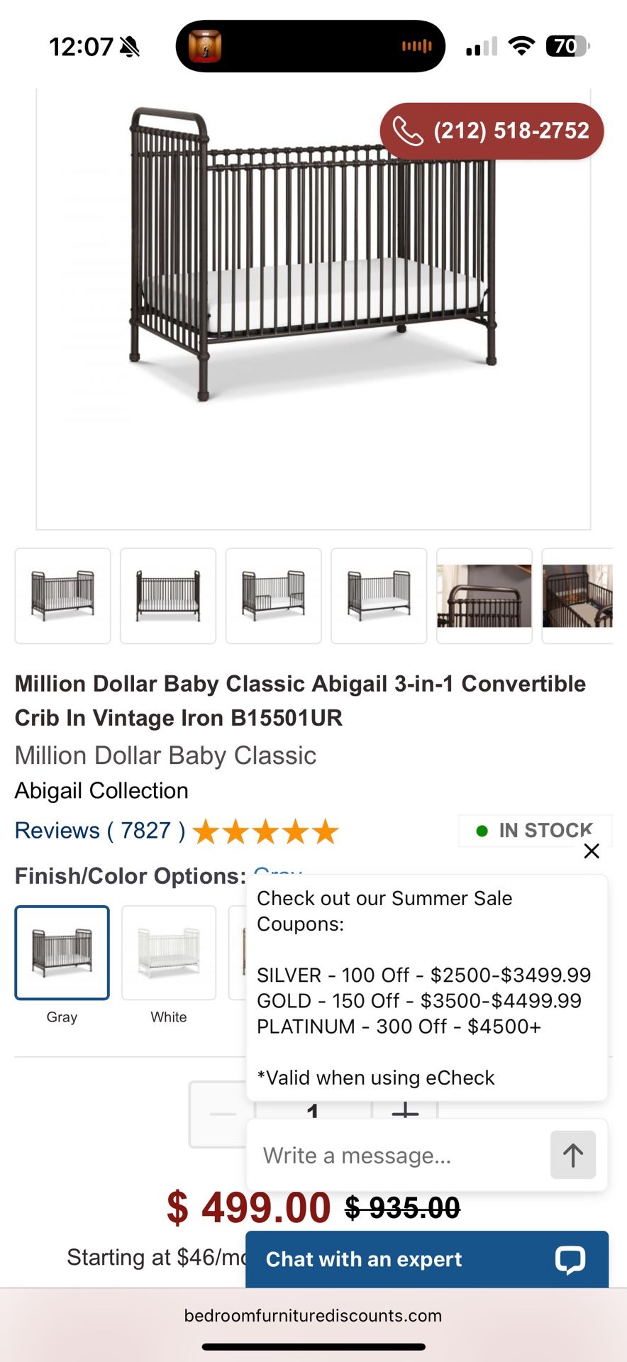 Million Dollar Baby Classic Abigail 3-in-1 Convertible Crib In Vintage Iron Like new condition!