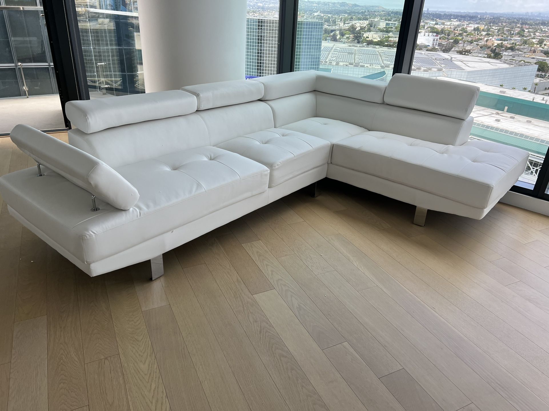 New Sectional W Adjustable Headrests . White Leather . 106” X 77”. Free Delivery !