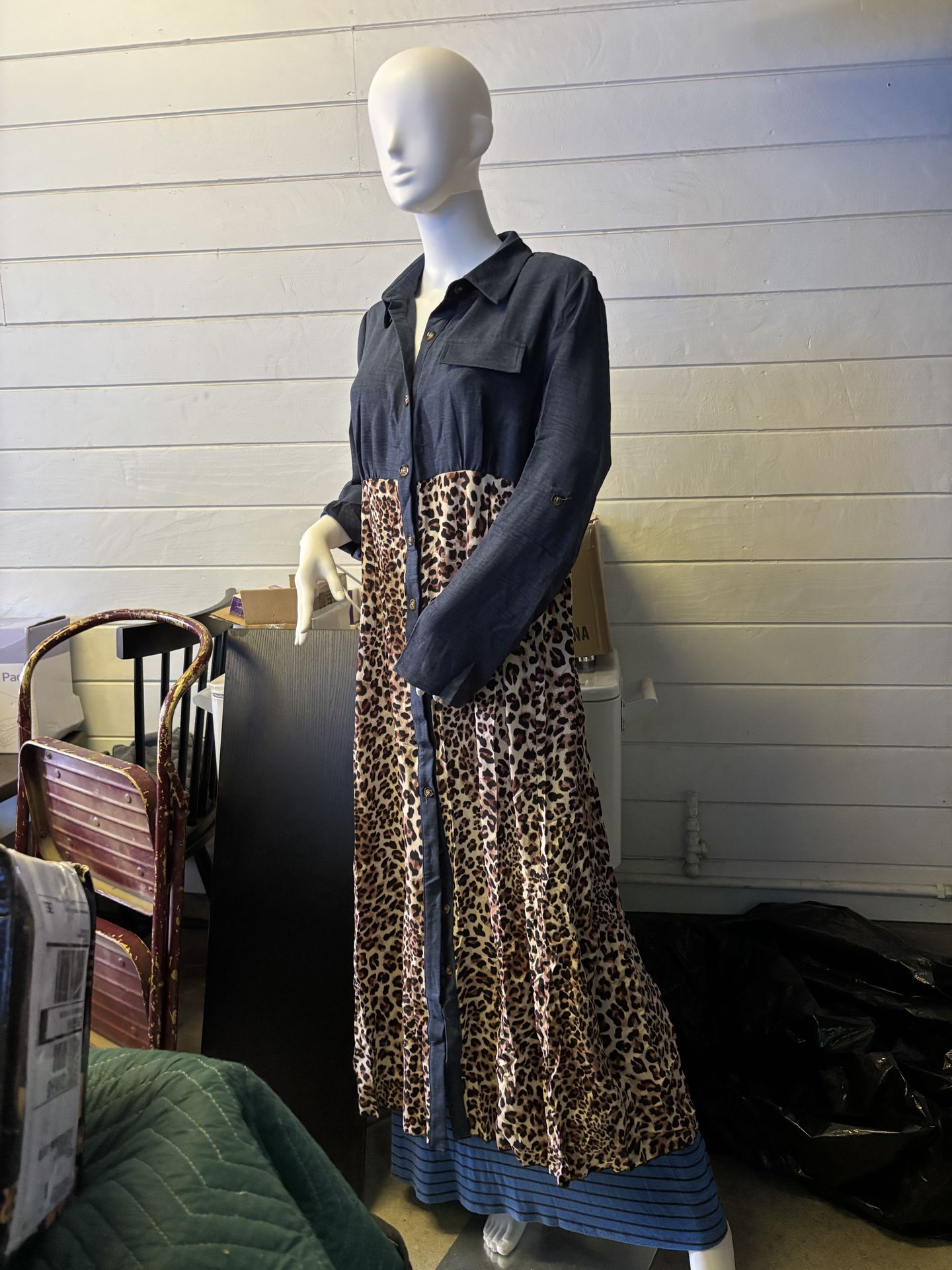 Dim denim colored top leopard printed bottom dress