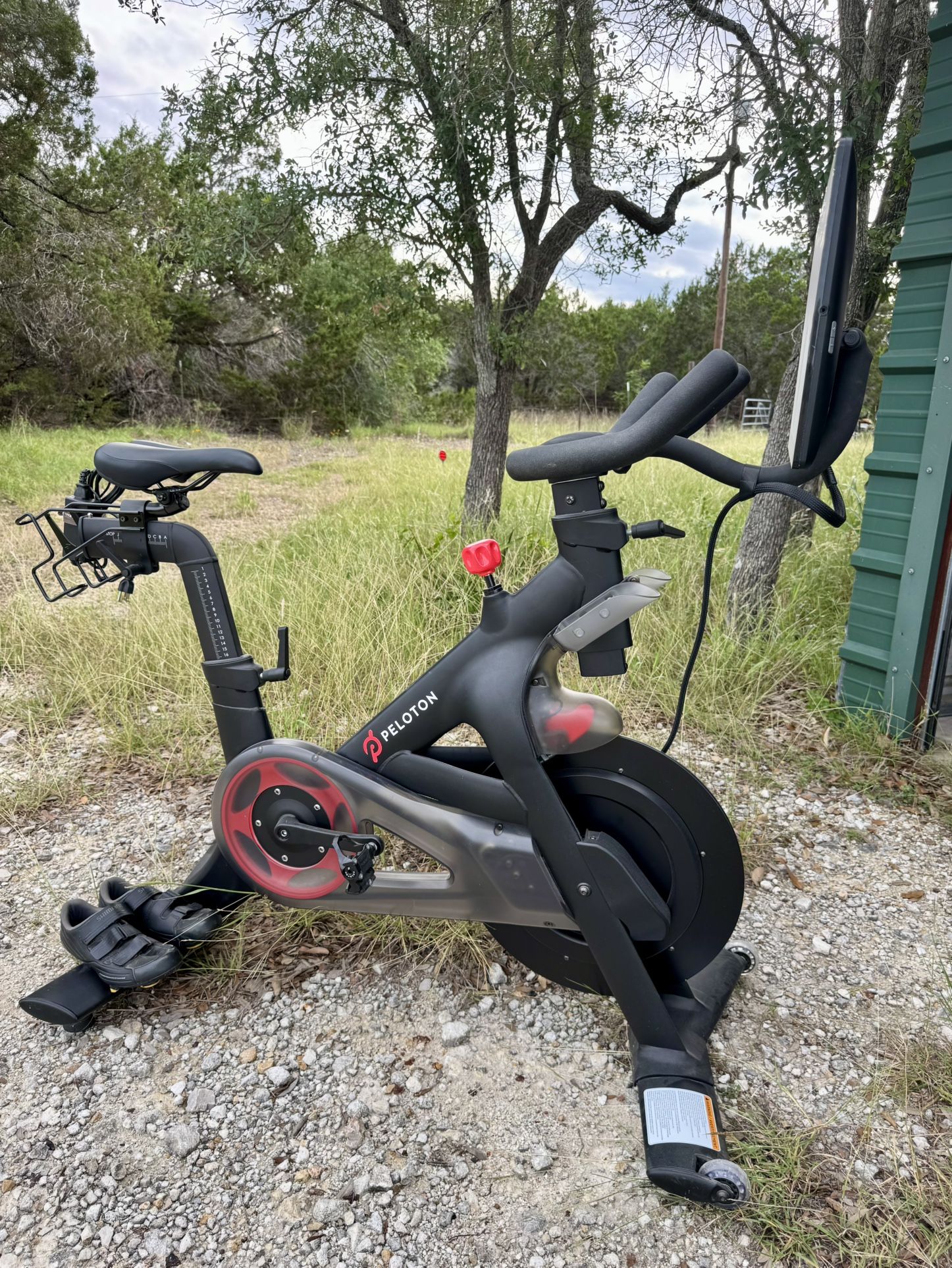 This peloton is in great working condition! No damage to note. Comes with Peloton clip in shoes, marked size US 8.9 or EU 43. I wear a Women’s size 9/9.5 for reference. Also comes with Drip Accessory 2 piece terrycloth spintowel set custom fitted for the Peloton.