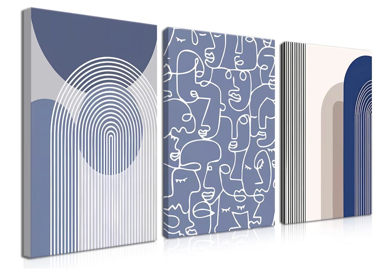 Abstract Wall Art Set of 3 - Modern Navy Blue Wall Decor Neutral Boho Oil Painting Lines Canvas Artwork Posters Prints Framed 16×24 Inch for Living Ro