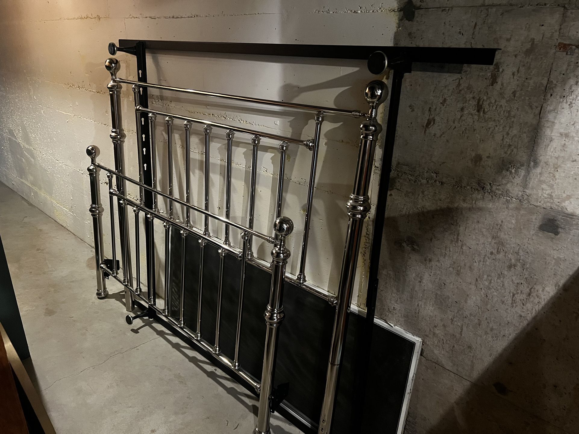 Selling our queen sized metal frame with headboard and footboard (see 2nd picture) In good condition but we no longer have the connecting hardware (bolts).