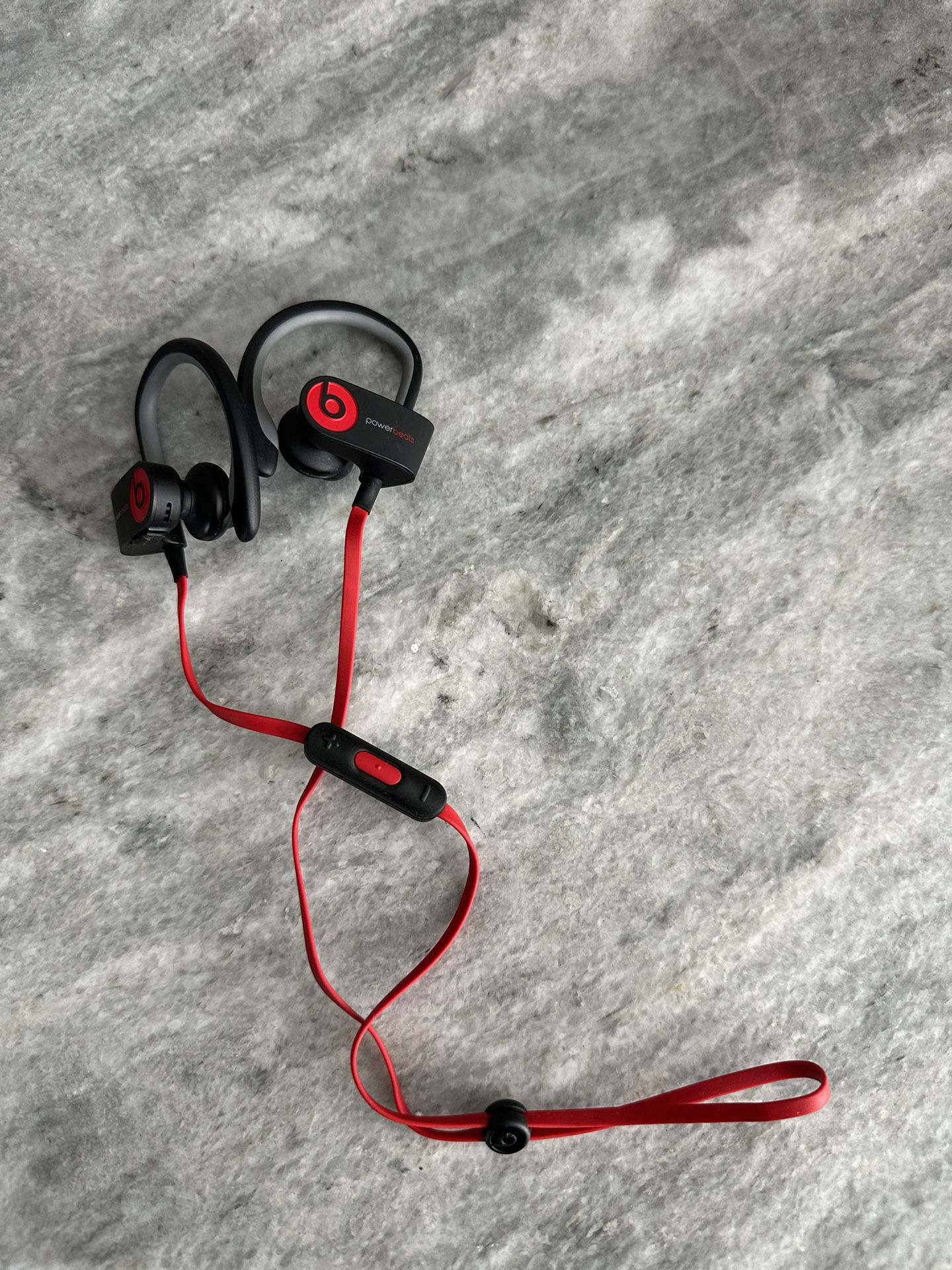Powerbeats 2, Bluetooth operation. Hardly used, they’ve been in a gym bag and they work great.