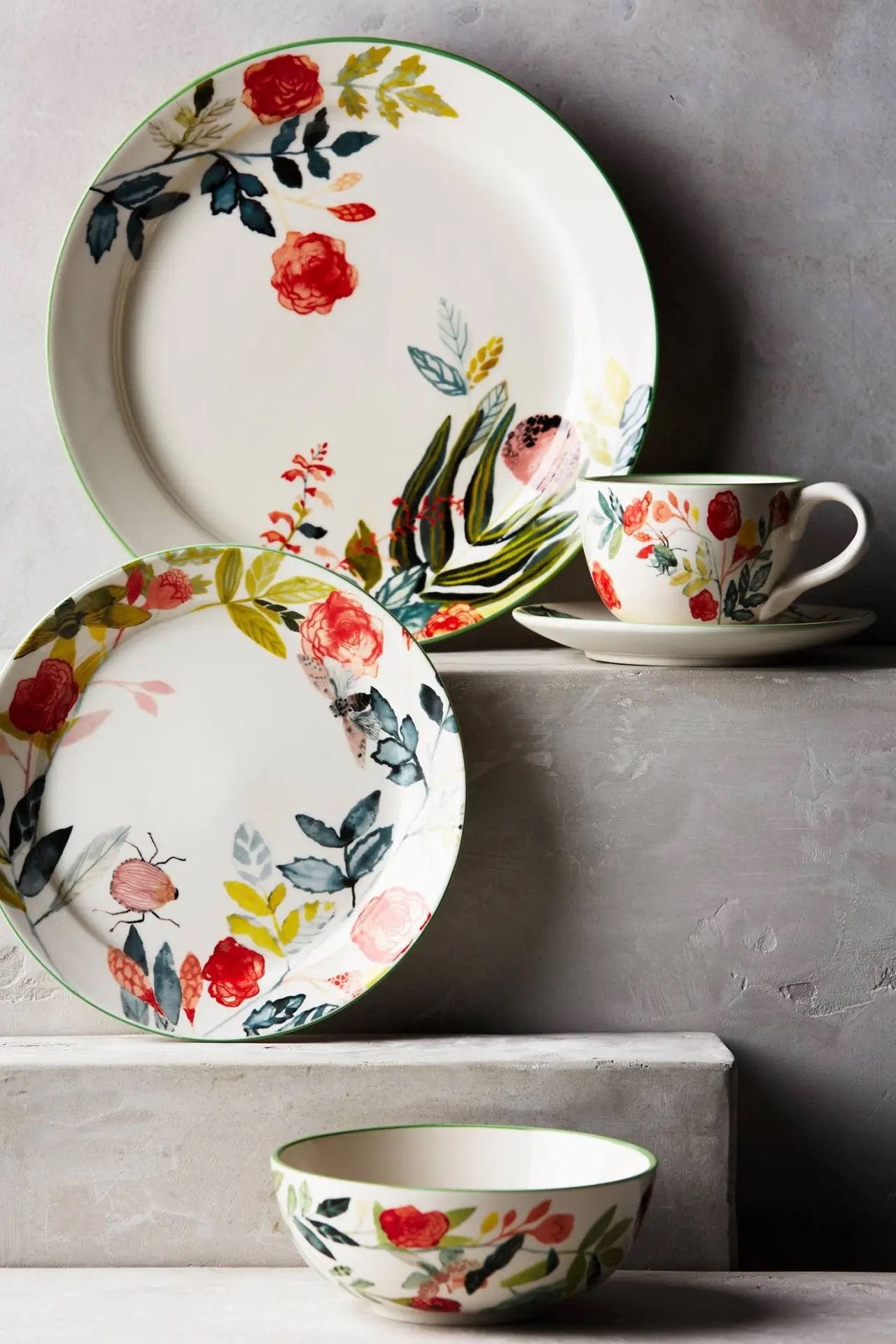 Dinnerware, Michelle Morin, Climbing Rose, 9 Pieces