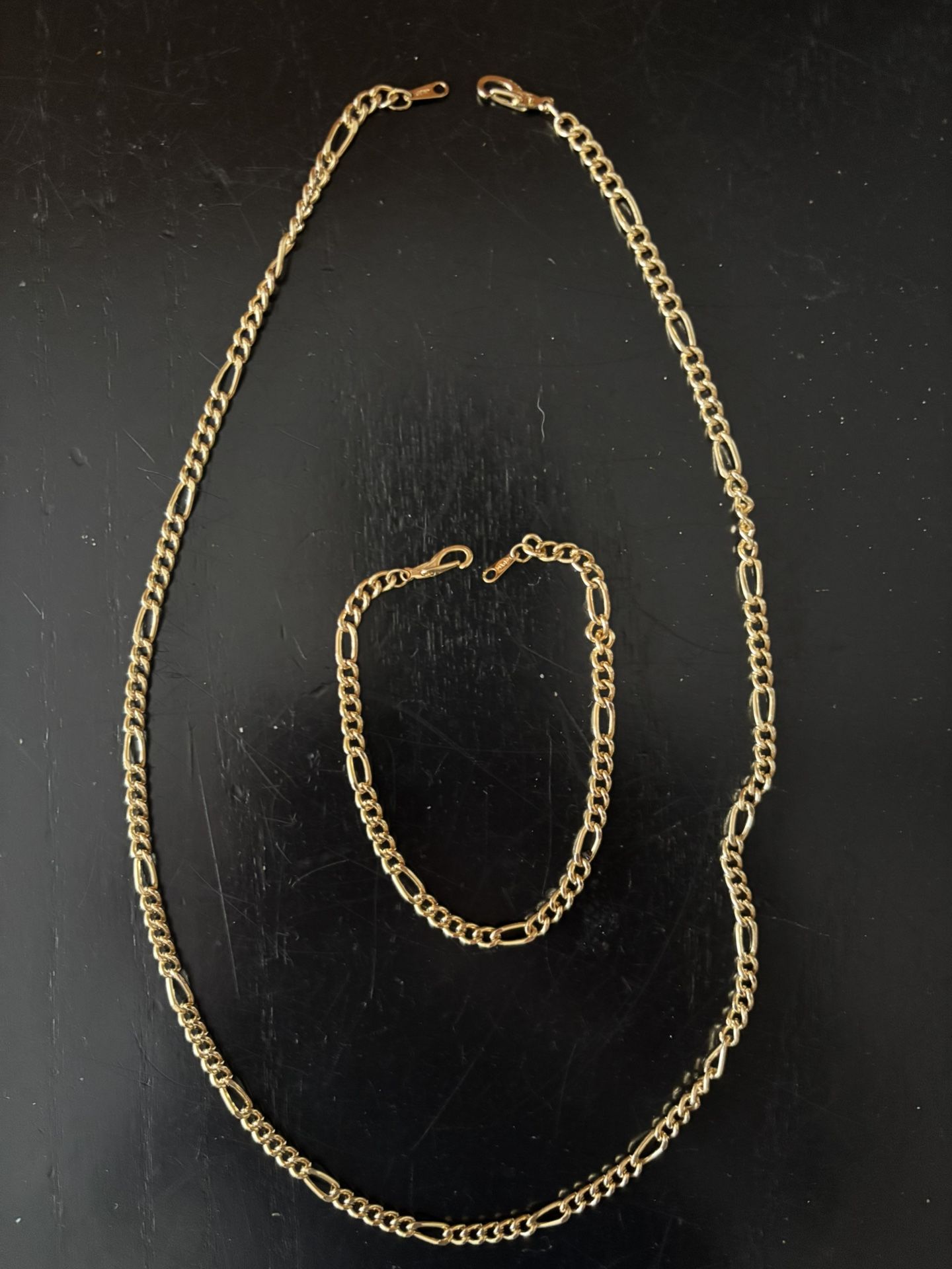 14 K gold plated Figaro 20" necklace and & 8" bracelet
