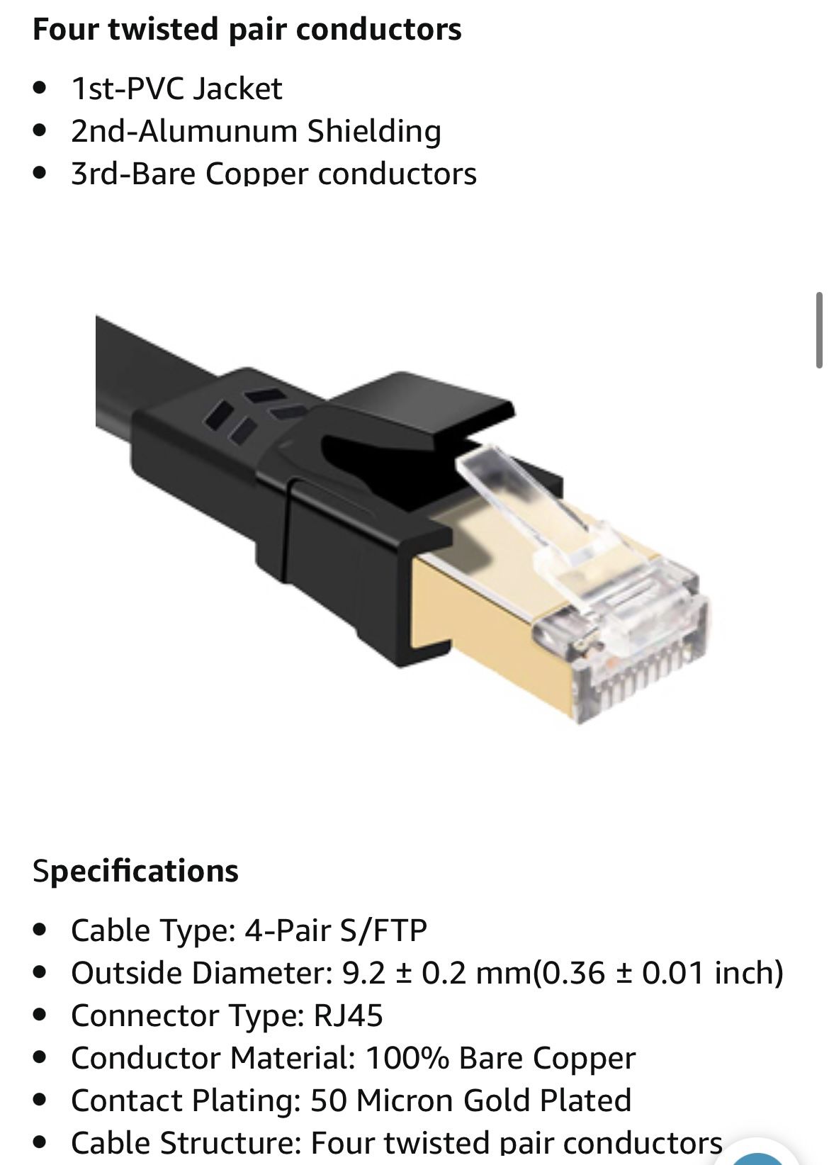 Ethernet Cable 25 ft, Supports Cat 8 / Cat 7 Standard, High Speed RJ45 Gaming Patch Cord, Durable Flat Internet Computer LAN Wire, Indoor Outdoor for Router, Switch, Modem, PS4/5, Xbox, Black