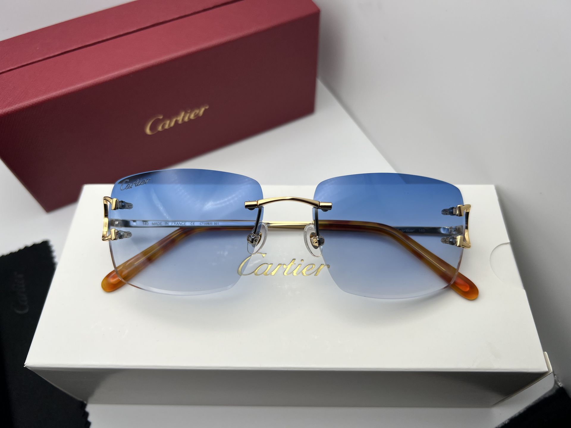 Cartier Big C 24K Gold/Blue Wire Piccadilly Buffalo Horn Buffs Glasses
