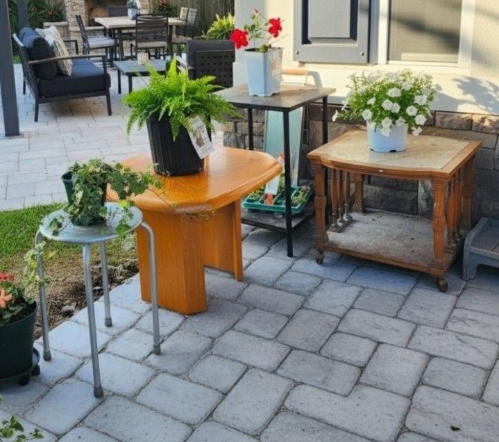 These former interior accents have found new life as outdoor patio plant stands, each one adding charm, height, and personality to your garden. Whether you're looking to elevate your favorite pots, create layered greenery, or add visual interest to your patio, these pieces deliver warmth and character with a touch of whimsy. 🪜 Choose from 5 Unique Styles: Silver Round Stand – Sleek and compact, perfect for small leafy plants or herbs. Adds a modern touch to garden corners or porch steps. Two-Tier Black Metal Shelf – Ideal for stacking pots vertically. Great for ferns, succulents, or trailing vines. Lightweight and easy to move. Tall Black Metal Pedestal – Elevates a single statement plant like a fern or monstera. Adds height and drama to your patio layout. Wooden Stand with Green Marble Top – Formerly a side table, now a regal perch for multiple small pots. The marble adds elegance and contrast. Blue Chair Plant Throne – A playful twist! This vintage chair now cradles a cactus or succulent. Perfect for cottage gardens or creative corners. 🌸 Why They Work Outdoors: Weathered finishes add rustic charm and blend beautifully with natural surroundings Elevated platforms help prevent pests and improve drainage Layered heights create dynamic garden arrangements Repurposed character makes each piece unique—no cookie-cutter stands here Budget-friendly—just $20 for any two, mix and match to suit your space 💡 Creative Placement Ideas: Line a walkway with staggered heights and colorful blooms Frame a seating area with greenery and texture Create a vertical herb garden with easy access to basil, mint, or rosemary Stage a photo-ready patio corner with seasonal flowers and vintage charm Use indoors too—they still work beautifully in sunrooms or entryways Local pick up in Orlando Fl College Park Can also deliver within 5 miles for another 10 dollars.