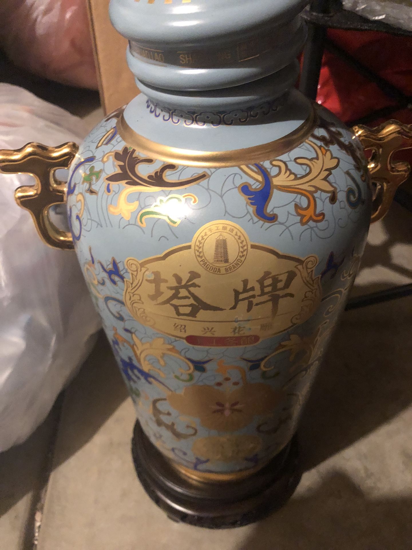 Beautiful antique vases Blue vase is in great condition and comes with stand that rotates. White vase has a small crack on lid. Both for 150$