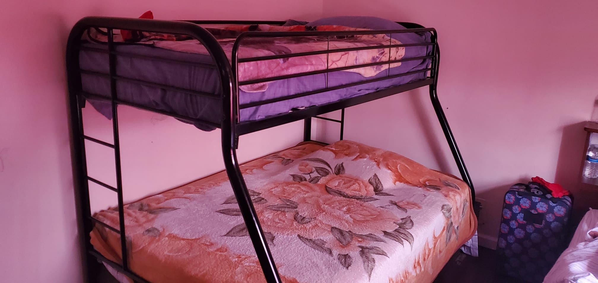 Bunk bed, down is full size, up is twin size, mattress included. Bought for $1,200 a year ago. Very clean, from a pet and smoke free house.