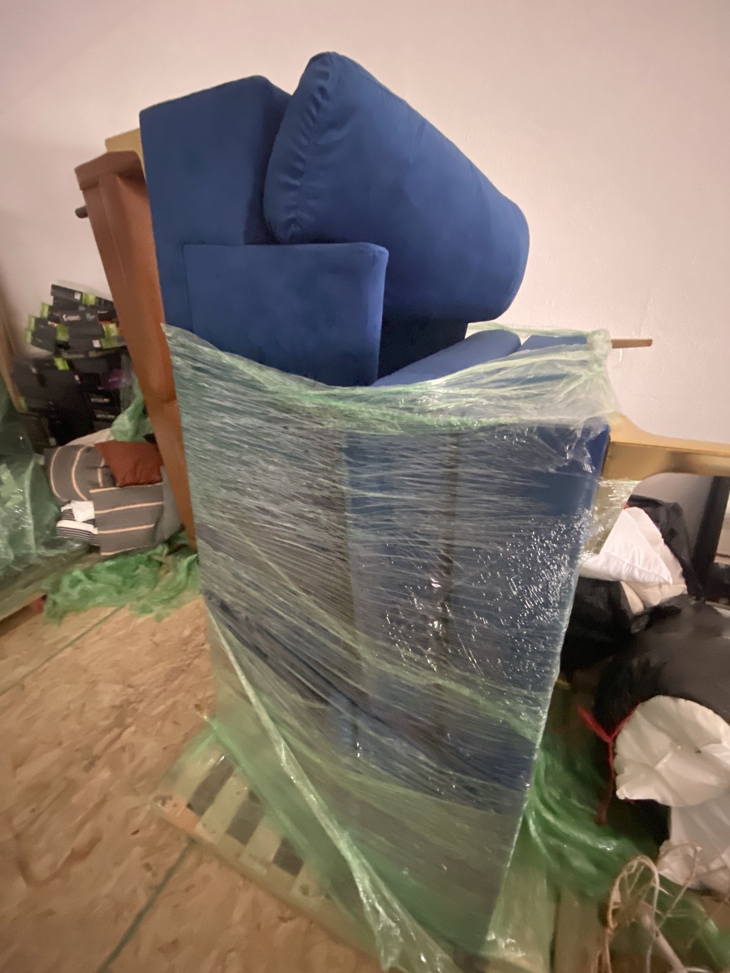 Almost brand new L-shaped blue couch been used for a couple months in storage for a year. Give me an offer.