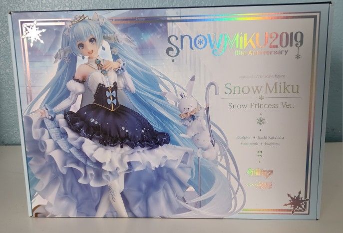 For sale is an Open Box, Never Used box containing the Snow Miku Snow Princess figure. This figure was ordered in 2019 and was delivered in 2022. I only opened the box to see the figure, but never took it out of the plastic casing, hence why it's Open Box, Never Used. As much as I would love to keep this figure, I'm currently clearing up space. Figure Height: 9.1" (230 mm)