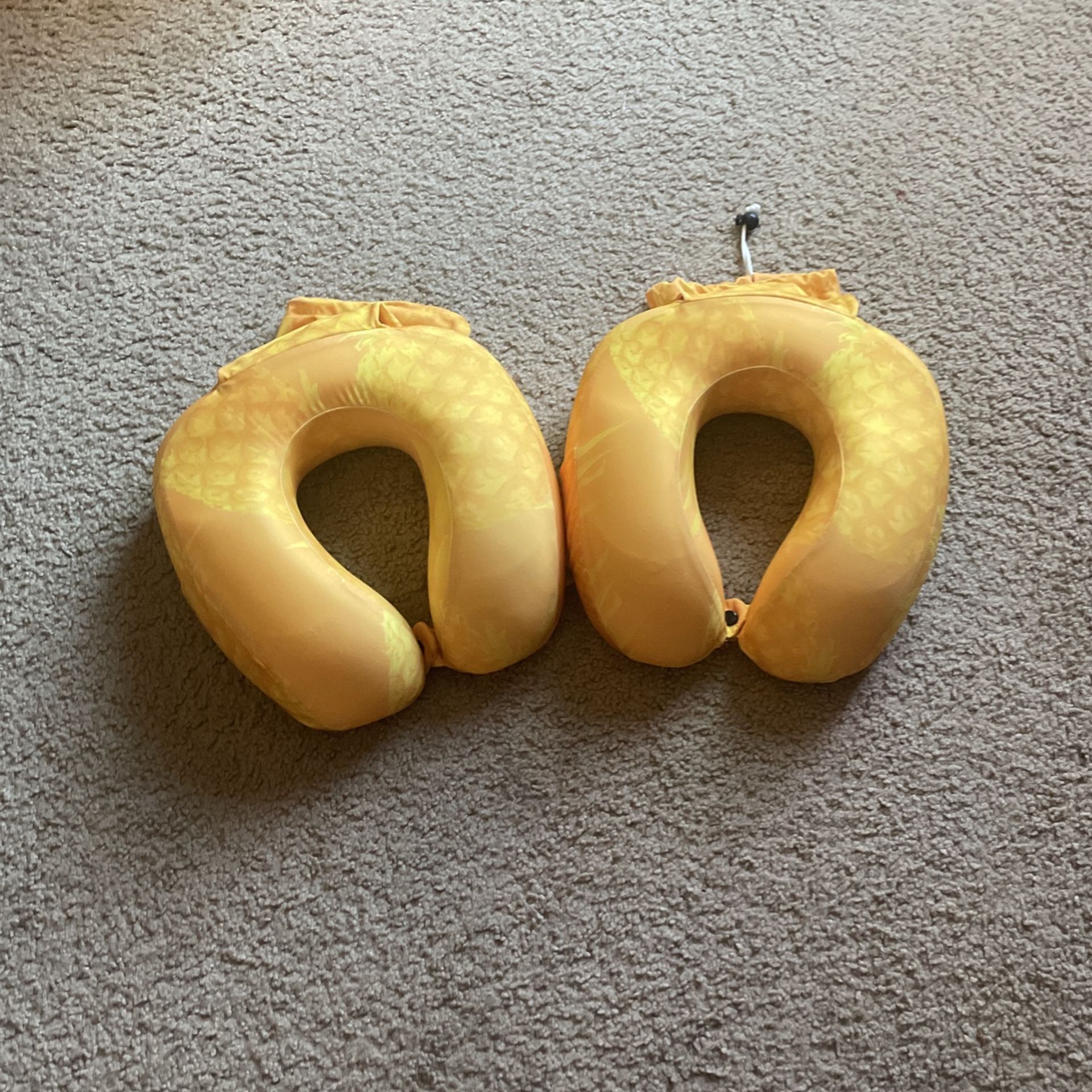 Like new condition. Memory foam Color yellow. Real thick pillow. Two Travel neck pillow.