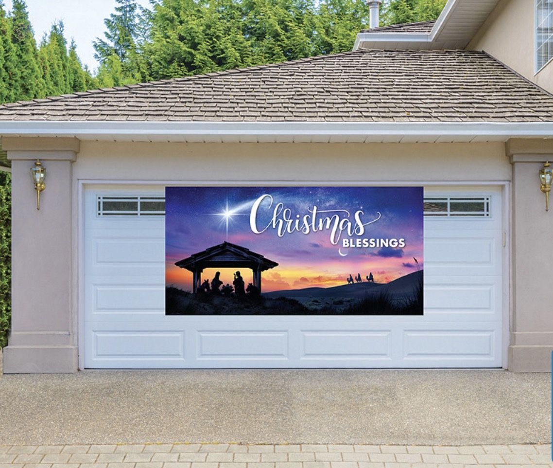 Garage door Christmas banner The image and phrase will enhance your outdoor decor. New, never used. This garage door banner features a silhouette of the Nativity along with the words, “Christmas blessings.” Material: Plastic. Measurements: 10 ft. x 5 ft. App shows on base- JBLM. Not not on base, but near Pacific Lutheran University. Can meet east Lakewood, Parkland, Summit, Fredrickson, Spanaway, South Tacoma, Bonney Lake, Sumner, Summit, Puyallup, Buckley, South Prairie, Orting, Graham, Eatonville, and Ruston on occasion