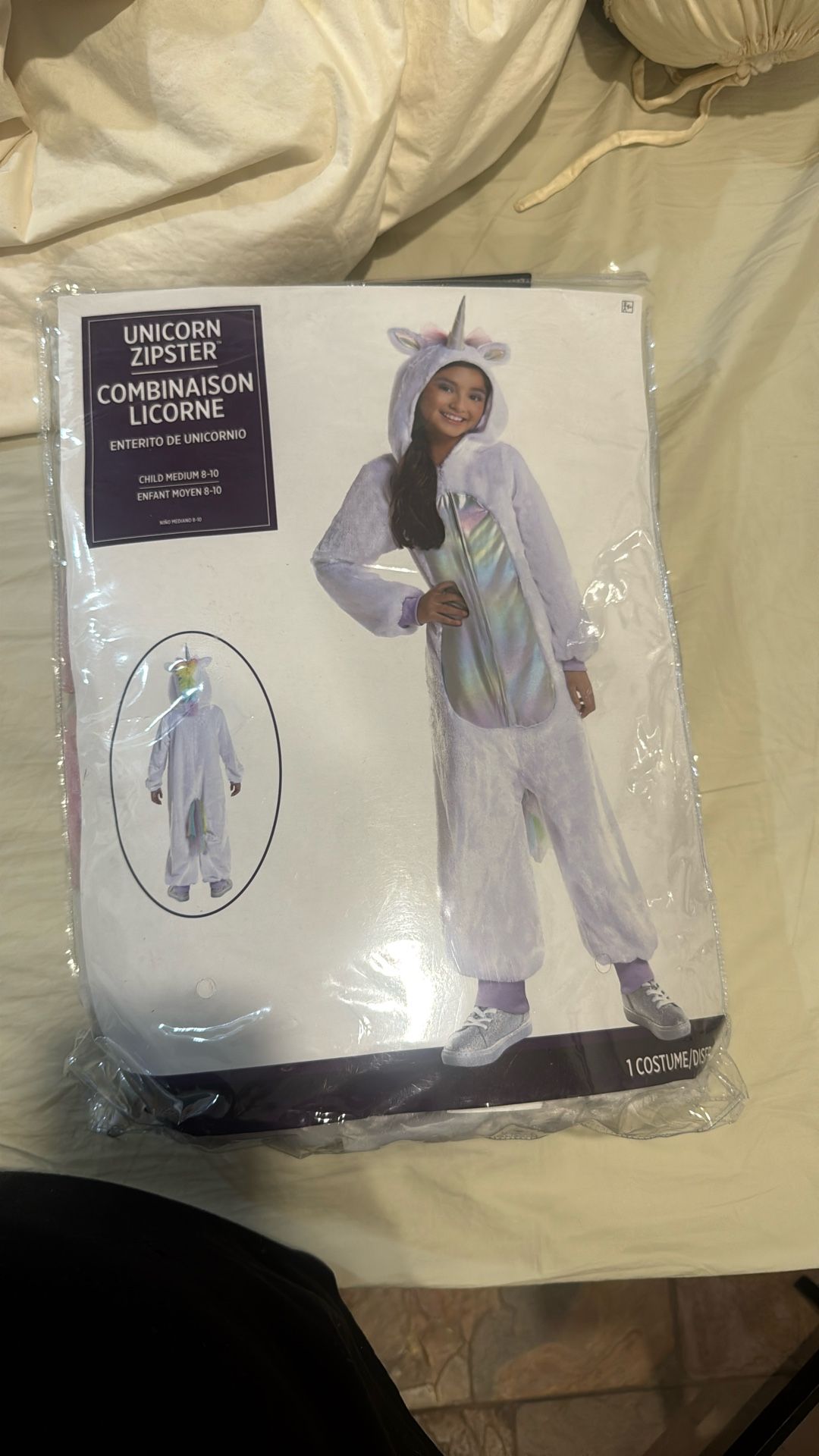 This is new in the package never worn unicorn costume or fun lounge wear. It says child medium size 8. - 10