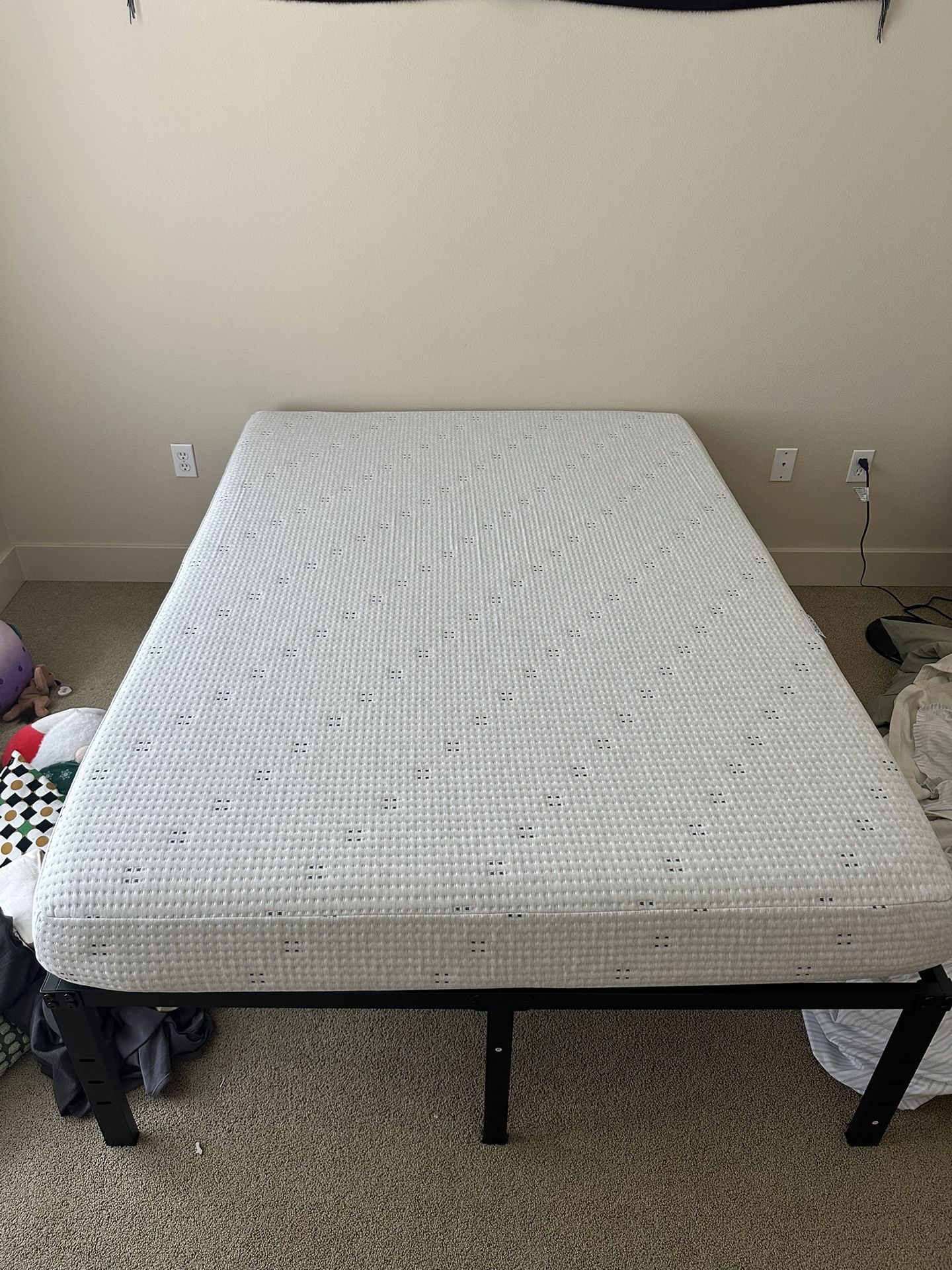 Practically new full size memory foam mattress. Will throw in bed frame for free if you want it!