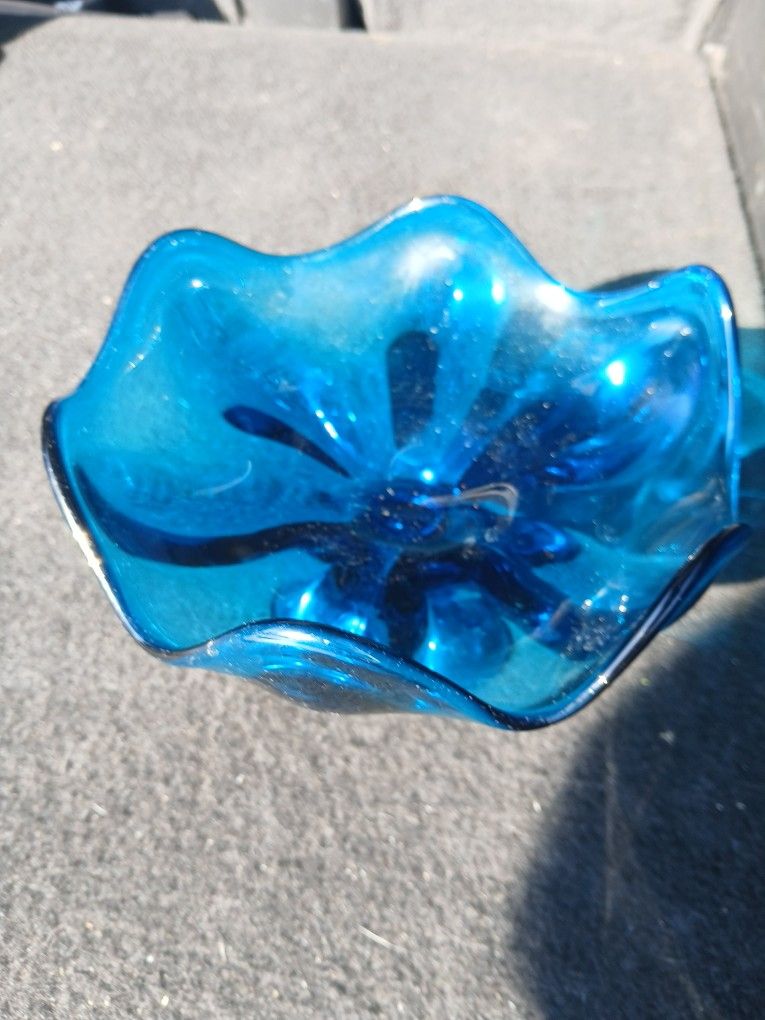 6" wide and 2" deep, vintage Blue Glass Dish in very nice condition, Only $25