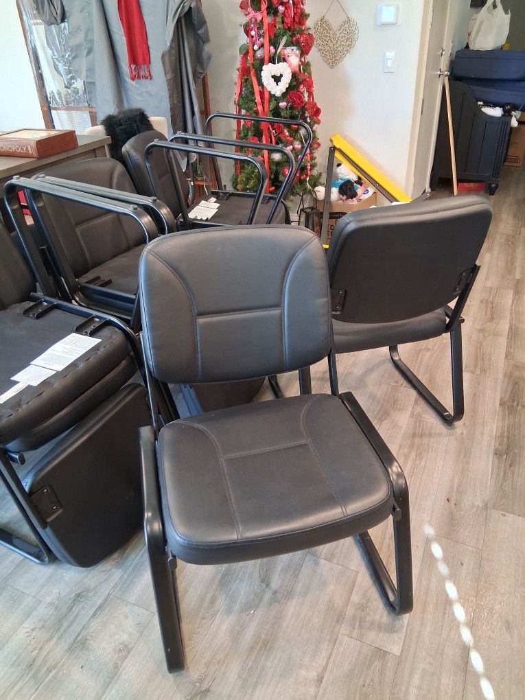I have 8 fairly new solid black frame. Heavy duty with leather cushions, retails for $139 to 179. Each chair.