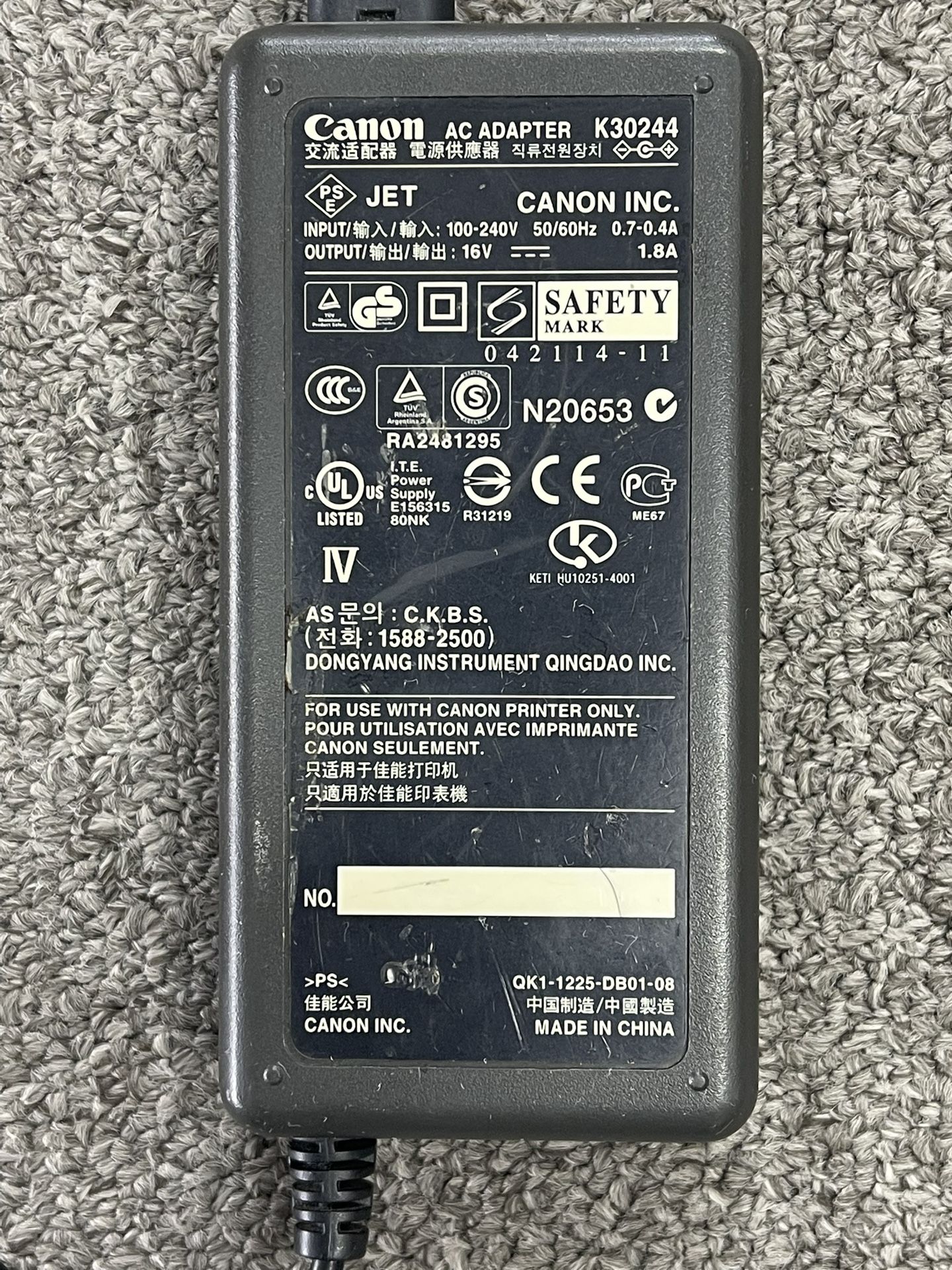 Canon Pixma IP90V 16V, 1.8A Power Adapter
