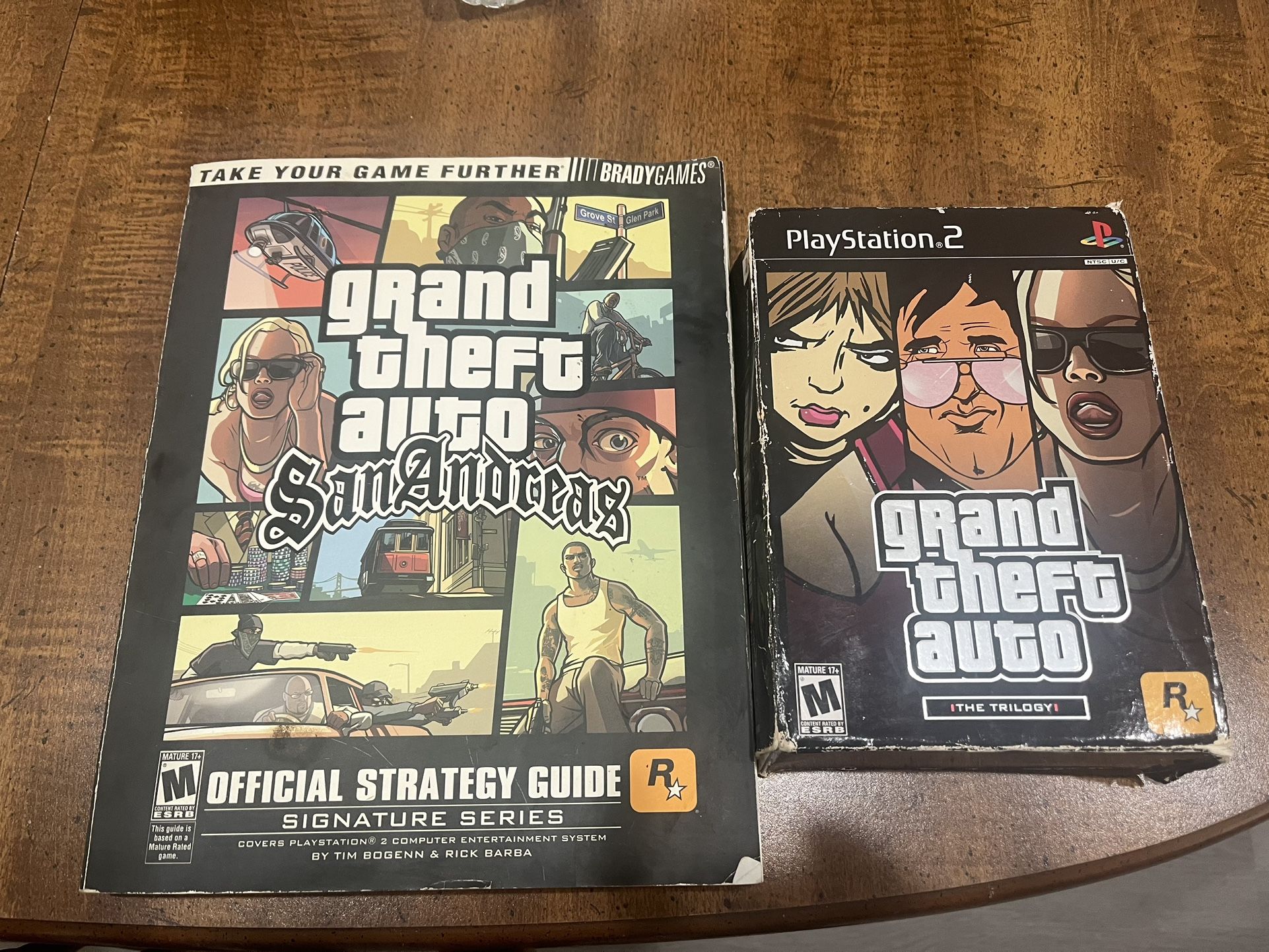 The original GTA trilogy for ps2. The discs and cases are in pristine condition and they have all the manuals/maps/posters. Guide book is in good condition.