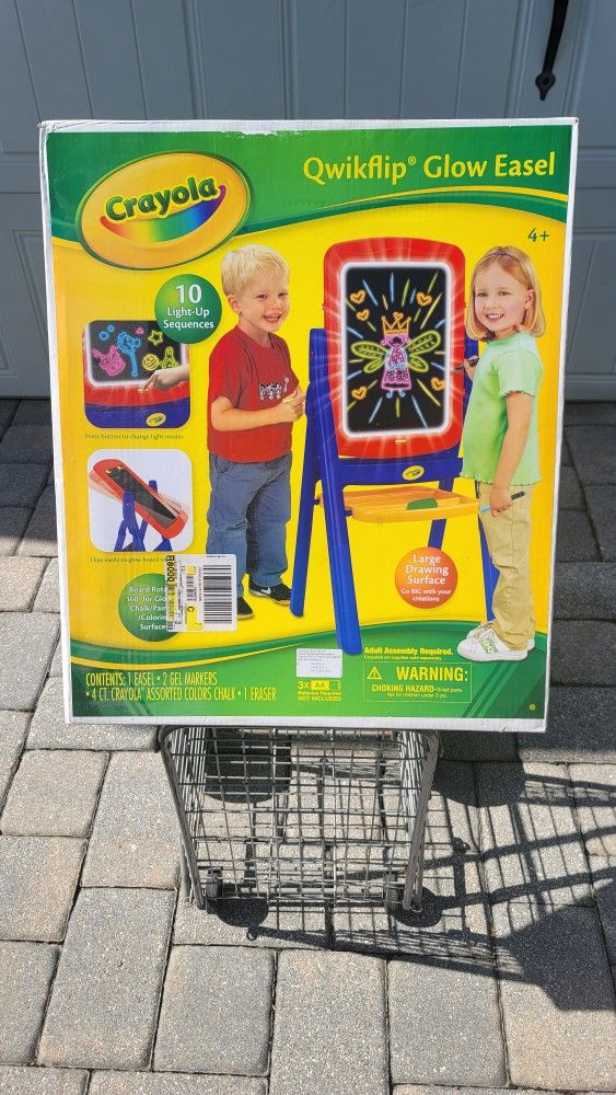 New in box, unopened Children's Crayola Quick flip Glow easel. Flips from chalkboard surface to a wipe-clean glow surface. Also Has 10 different light up sequences to entertain your artist! Comes with 2 gel markers, 4ct assorted color chalk, and 1 eraser. Great activity center for kids 4 and up. Nice afterschool/weekend activity to keep your youngsters busy. And it makes a great holiday gift, too!! Paid $70...going for $50 -$75 retail. Askin $35 obo. Come and get it!