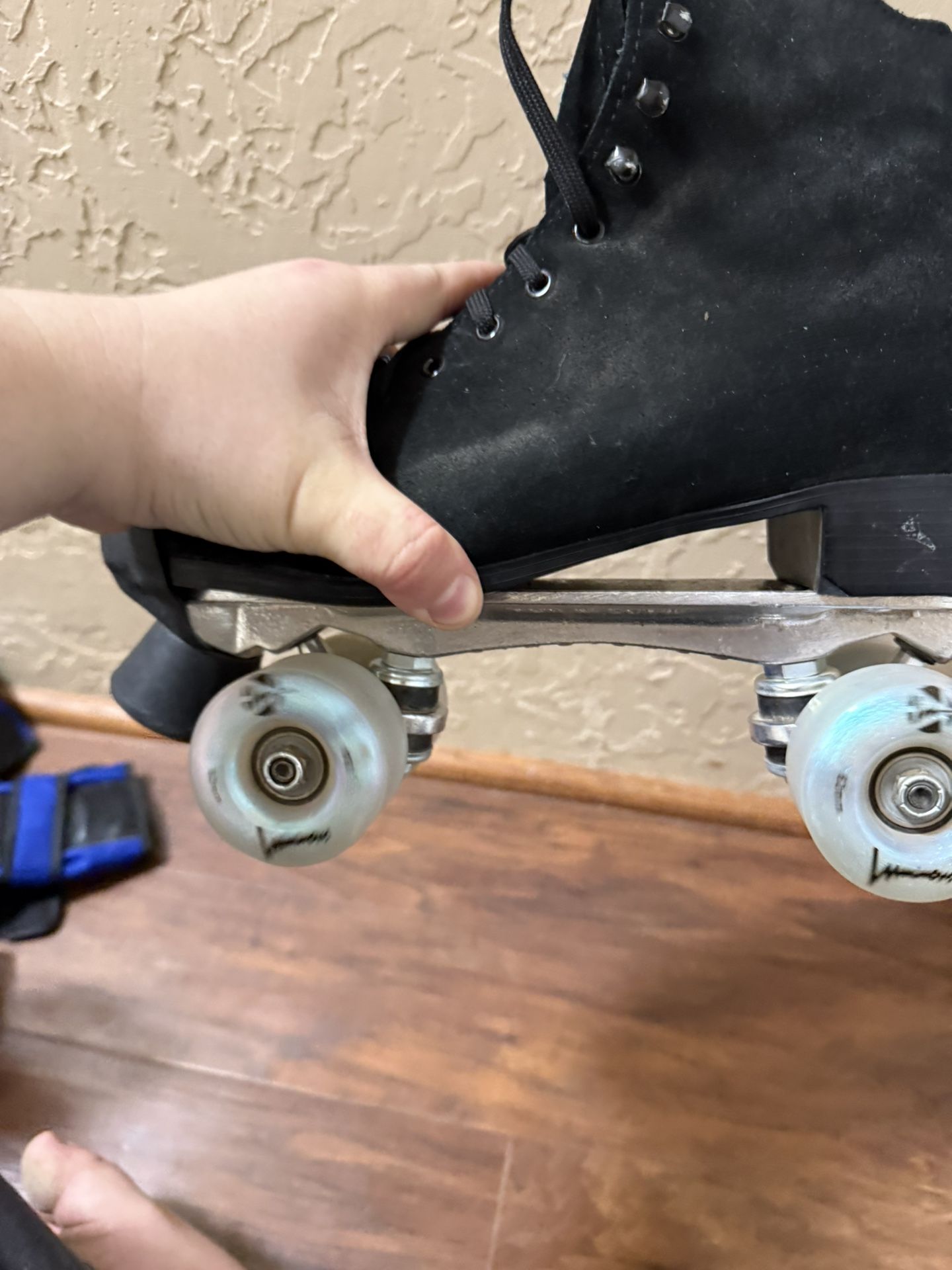 Size 11 boardwalk skates and accessories! Everything listed is included. Everything is used though in very well taken care of. You get the base wheels and light up wheels are currently on the skates.