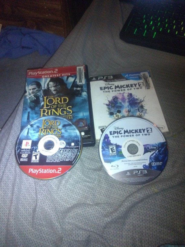 PS2 LORD OF THE RINGS THE TWO TOWERS And PS3 EPIC MICKEY 2 THE POWER OF TWO