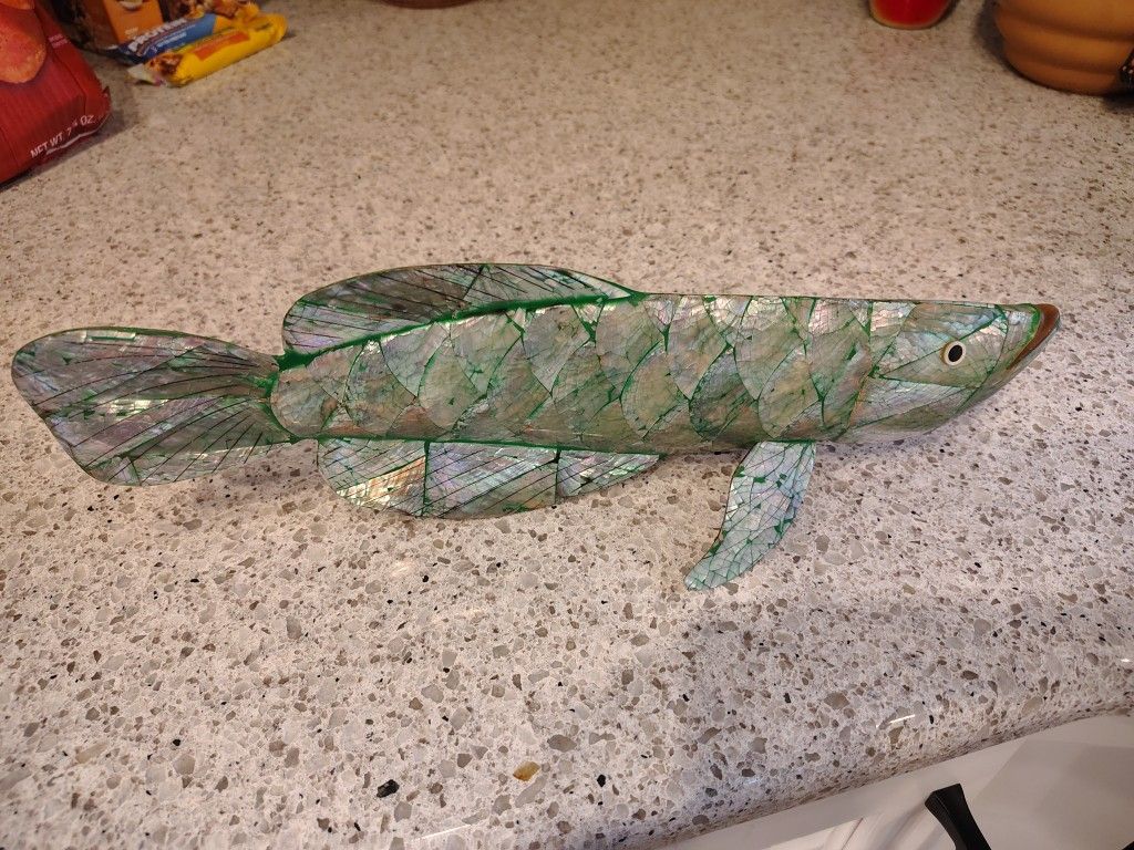 Beautiful Paua Abalone Shell Arowana Fish Sculpture
