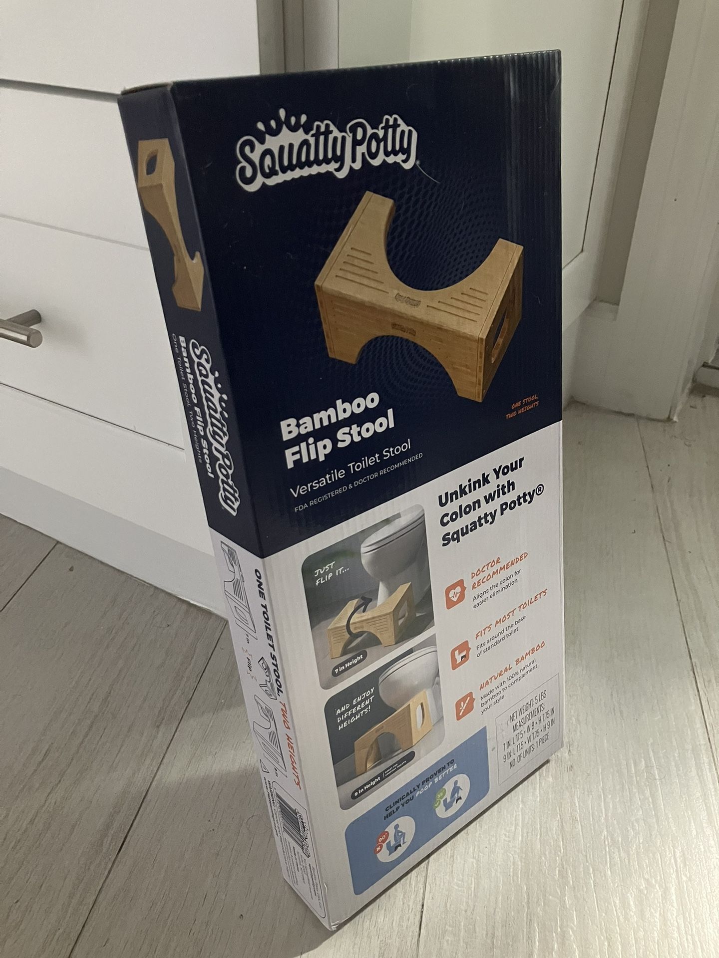 Bamboo Squatty Potty, never used brand new in box. Got one too many and have no use for it. Flips on its side for 2 heights- 7” and 9”, minimalist bamboo wood style. Local pick up only. Will consider shipping, message me.