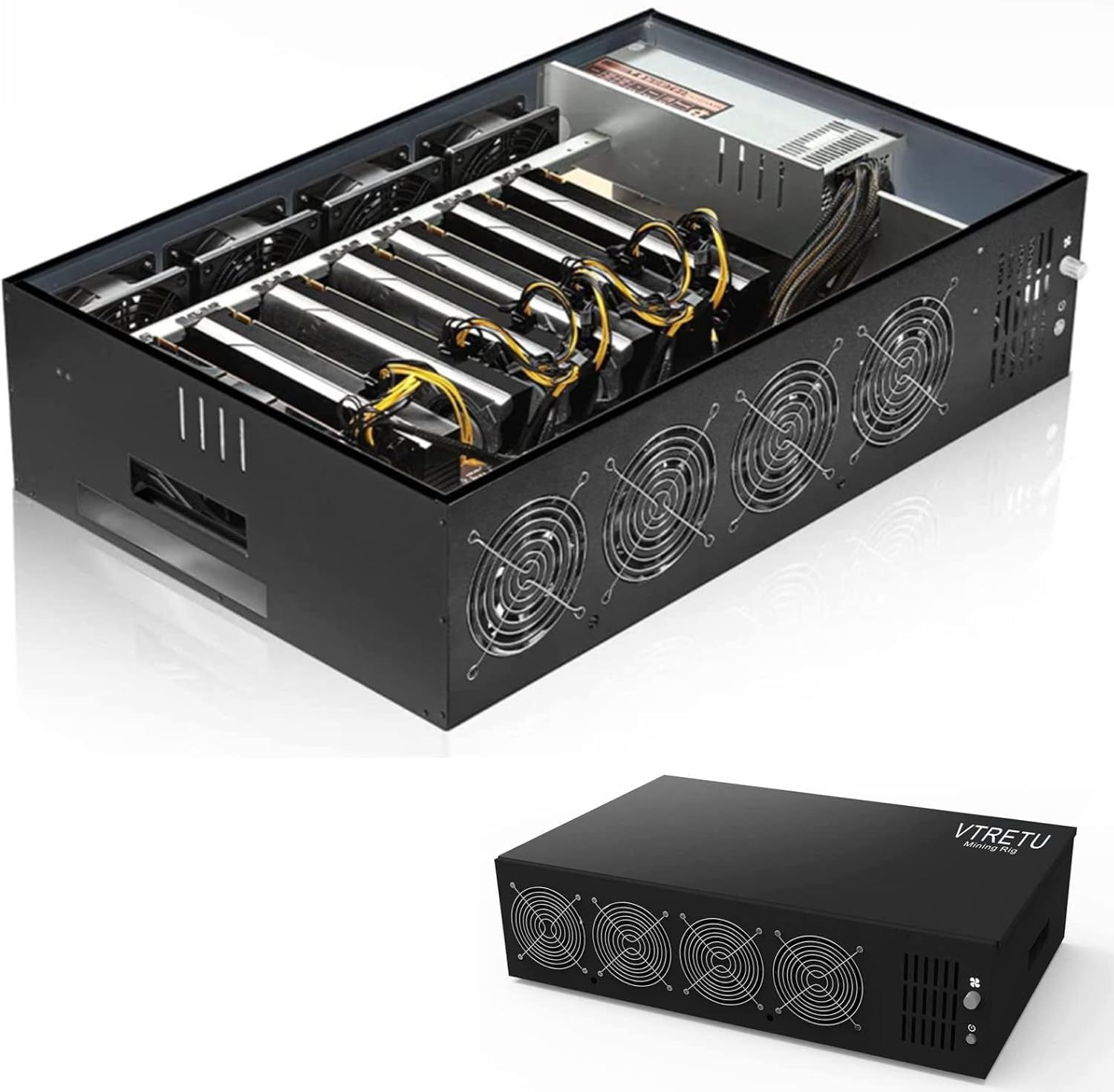 VTRETU Mining Rig System,Complete ETC Crypto Miner with Windows10,Including 8GPU Mining Motherboard,2000W Power