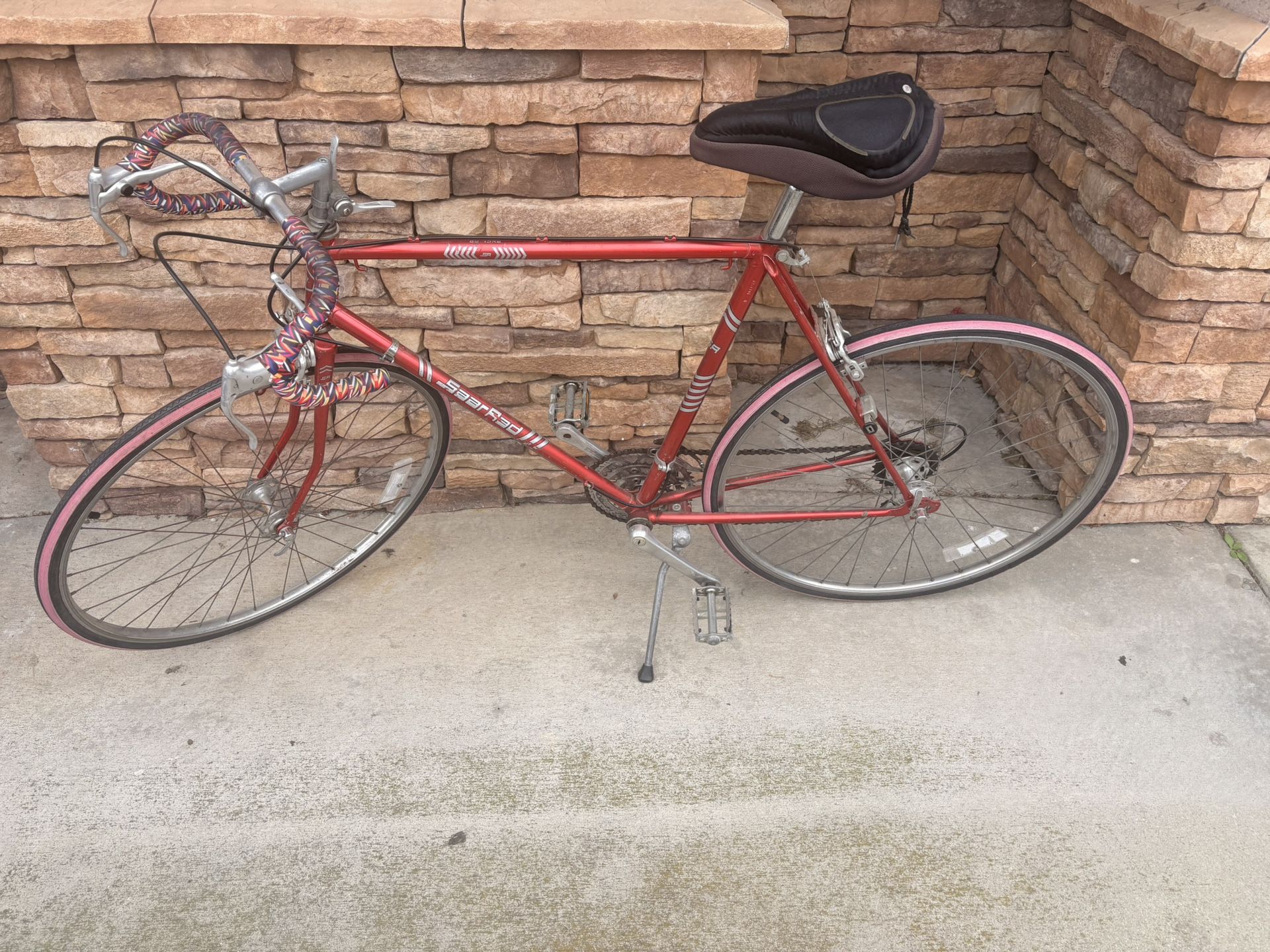Vintage! It has gears on the frame (downtube shifters). New handle bar tape but still needs some tlc! Brother is 6’4 and it fits him well.