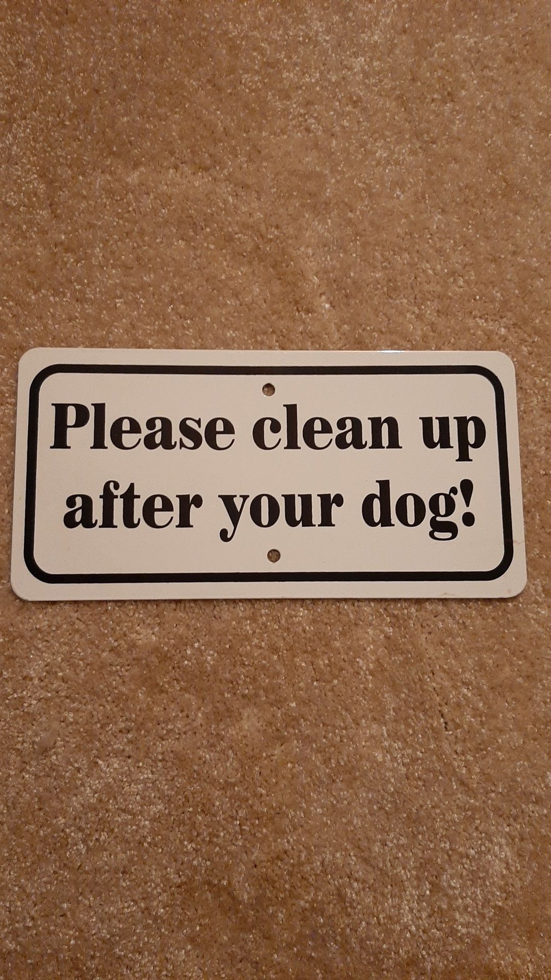 Heavy duty metal outdoor sign telling people to "please clean up after your dog!" sign was only used for display never put outside as intended. Perfect way to get across to that local inconsiderate walker who's dog always seems to go in your yard and they dont pick it up. Dimensions 12 x 6 ready to be posted. If interested send name and number and we can make arrangements. Cash pickup only.