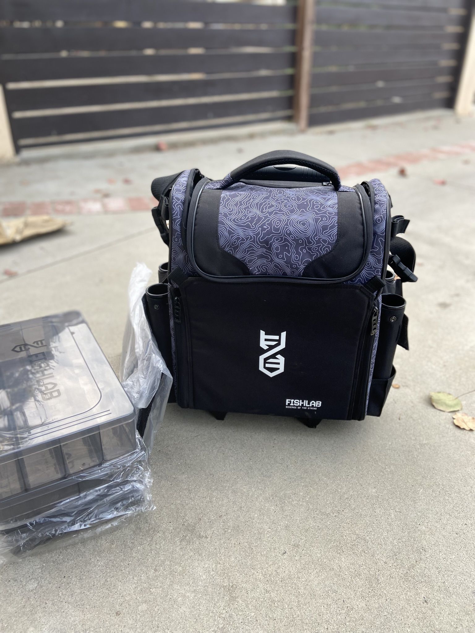 *BRAND NEW- NO ORIGINAL BOX *SEE PICS The FishLab Large Roller Bag has the following dimensions: 57.5 cm Tall 48.5 cm Wide 33 cm Deep FL-LRB comes with four FishLab Smoke Tinted Tackle Boxes: (3) 3700 and (1) 3700D FIRM ON THE PRICE Location: Panorama City 91402