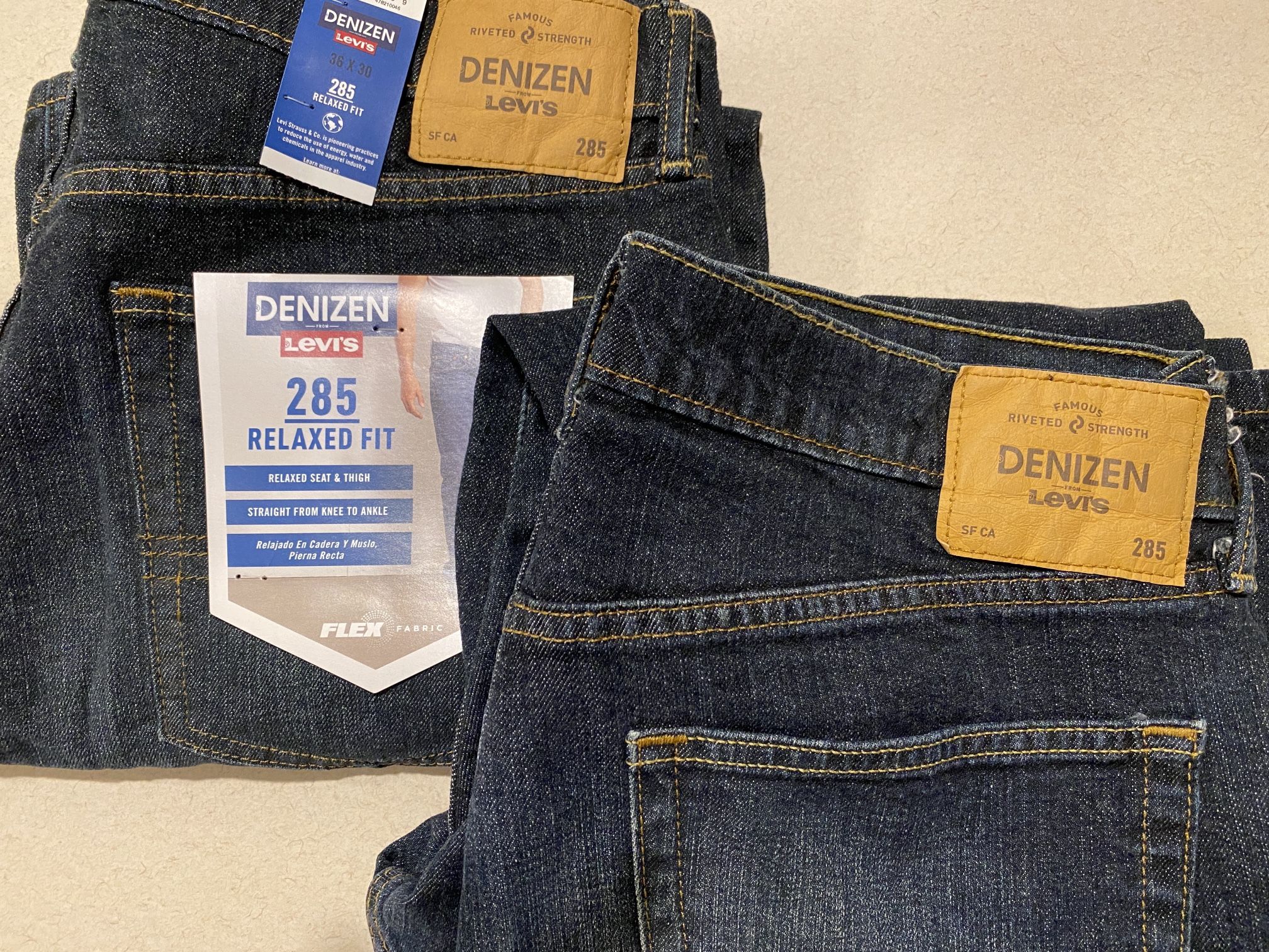 36 x 30 285 Relaxed Fit. One pair is new and stilled tagged, then other pair washed once and still in like new condition. Lynnwood pickup.