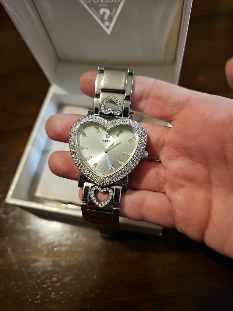Guess heart watch Needs batteries Missing 2 little diamonds Comes with extra links and original box $30
