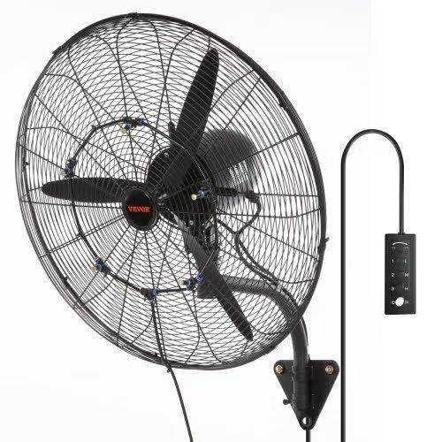 VEVOR Wall-Mount Misting Fan, 24 Inch, 3-speed High Velocity Max. 7000 CFM, Waterproof Oscillating Industrial Wall Fan, Commercial or Residential for Warehouse, Greenhouse, Workshop, Black, ETL Listed#230