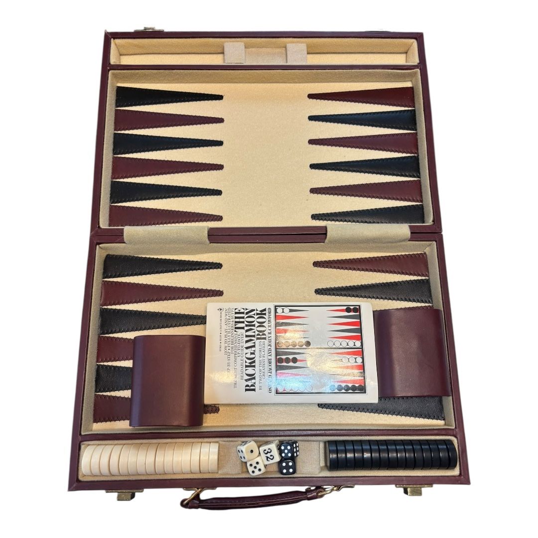 🎲 Vintage Backgammon Set – Leather Case + Book